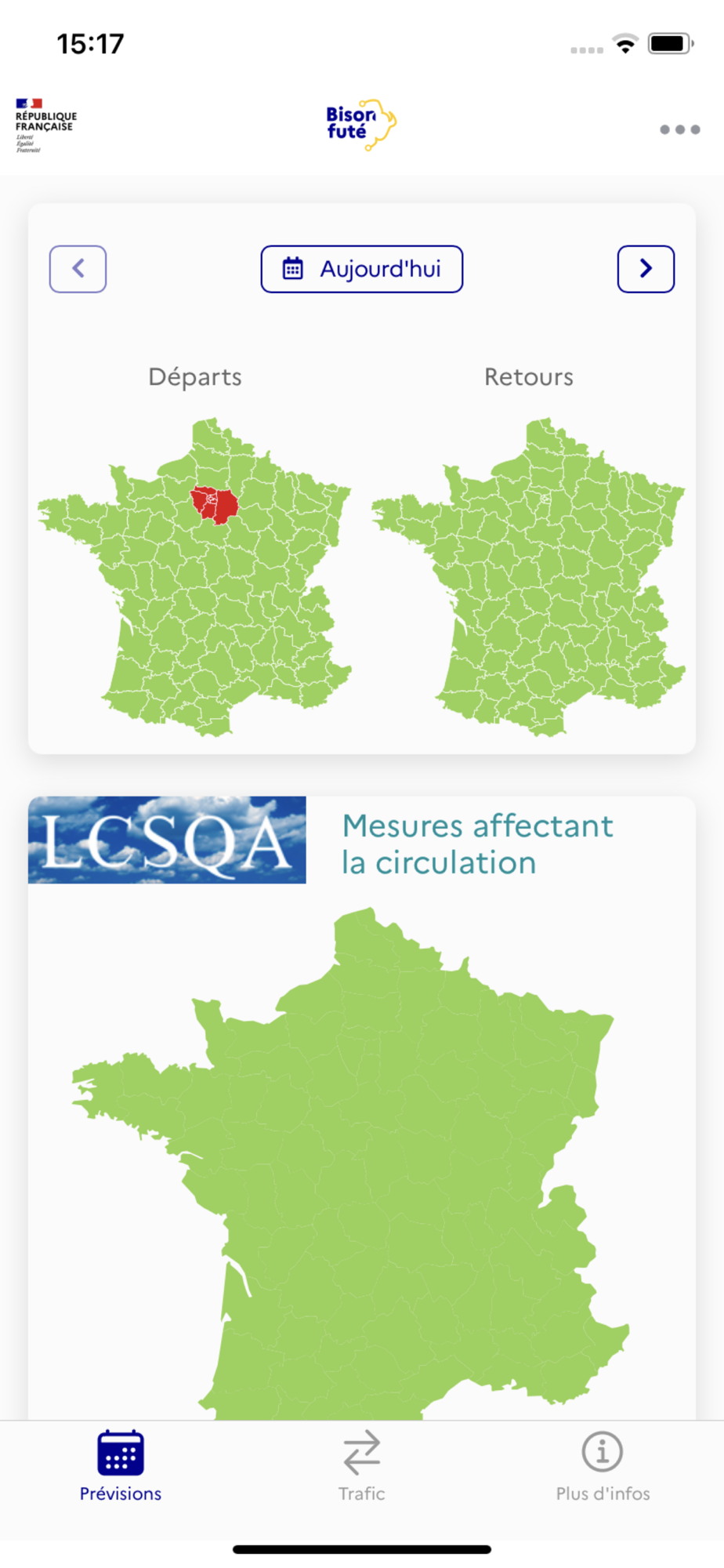 - les prévisions détaillées précisant les axes les plus circulés, les horaires à éviter ainsi que des conseils pour vos déplacements ;