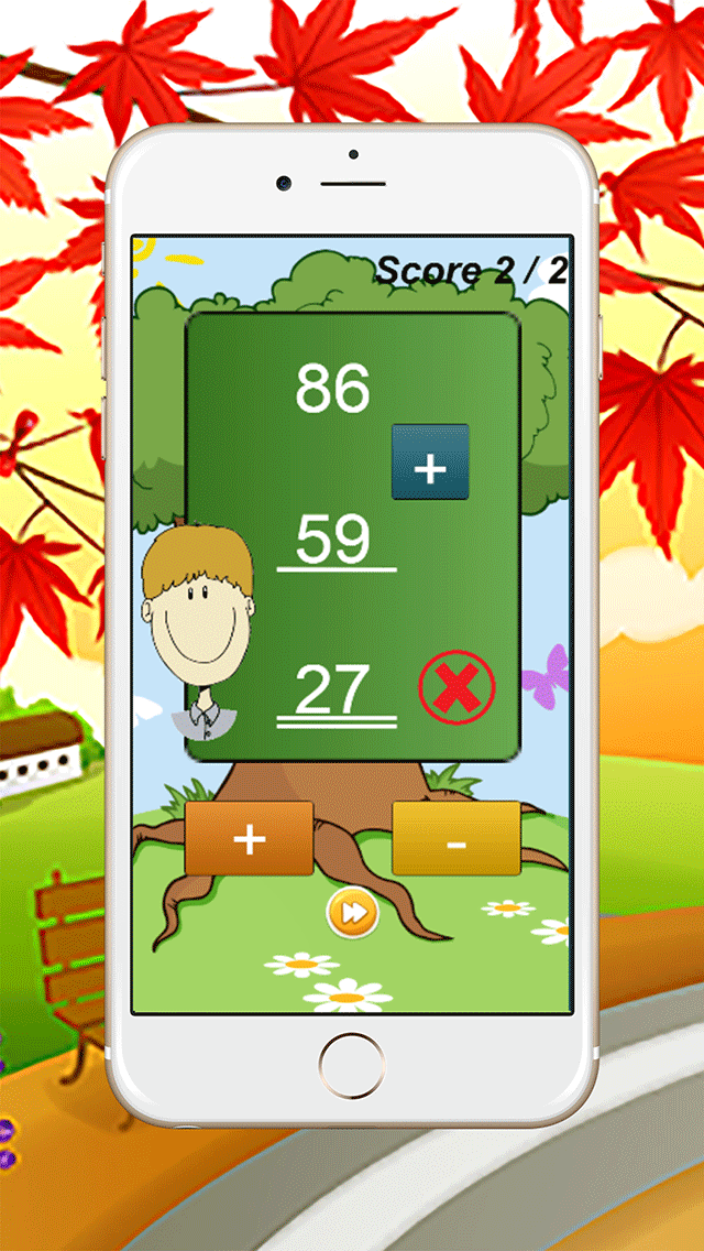 You just choose the correct symbols for mathematical questions whether the answer is the addition or subtraction. This game is suitable for children in primary education.
