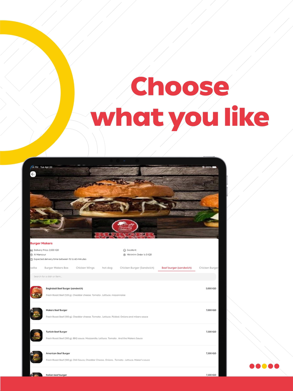 By using Talabatey application, you will be able to order any type of food you like from more than 1000 restaurants in Iraq and Sudan.