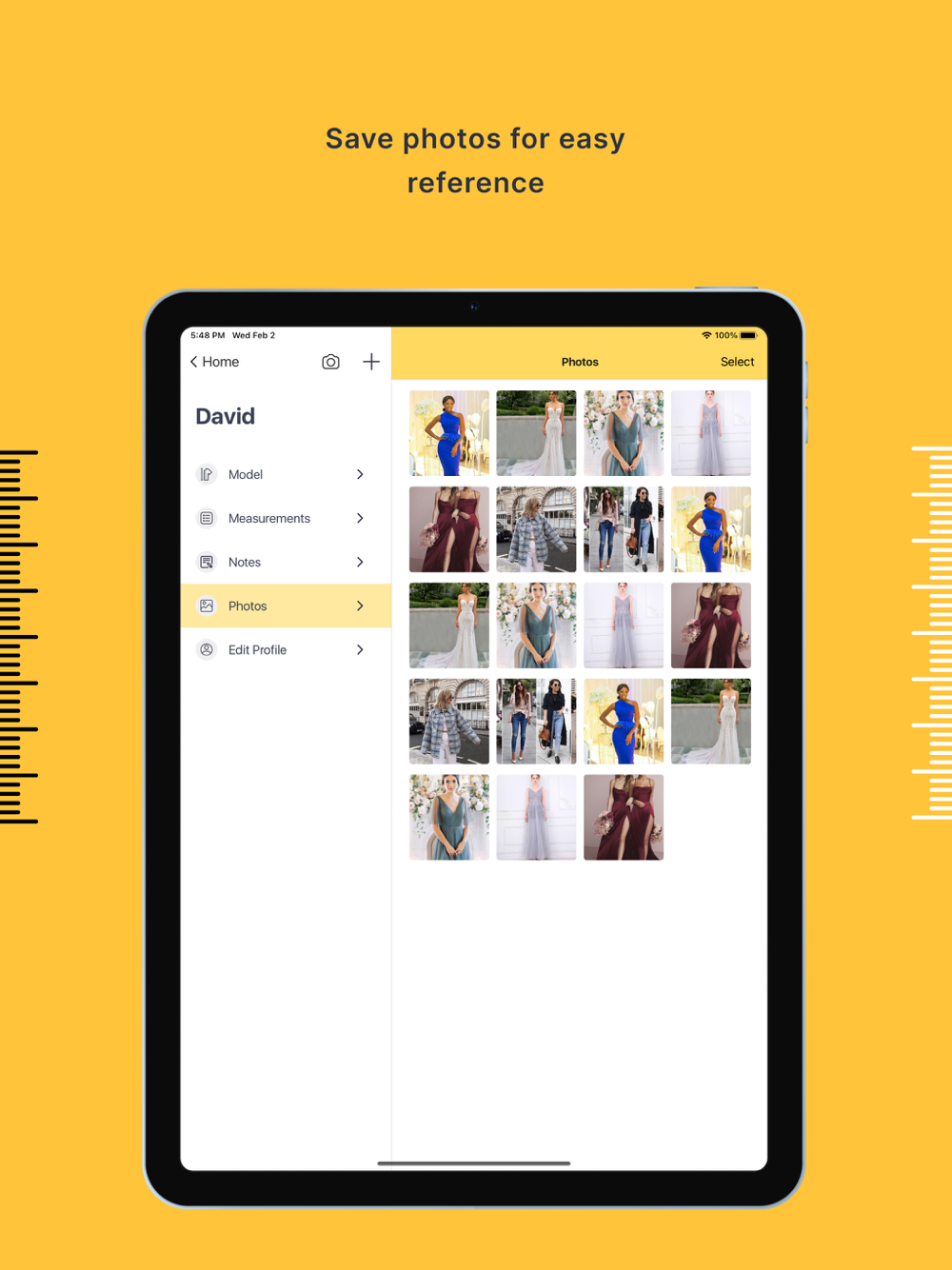 If you’re an entrepreneur in the fashion industry, keep track of all your customers' measurements in one convenient location, keep them organized and synced to the cloud, and easily find your customers with powerful search tools!