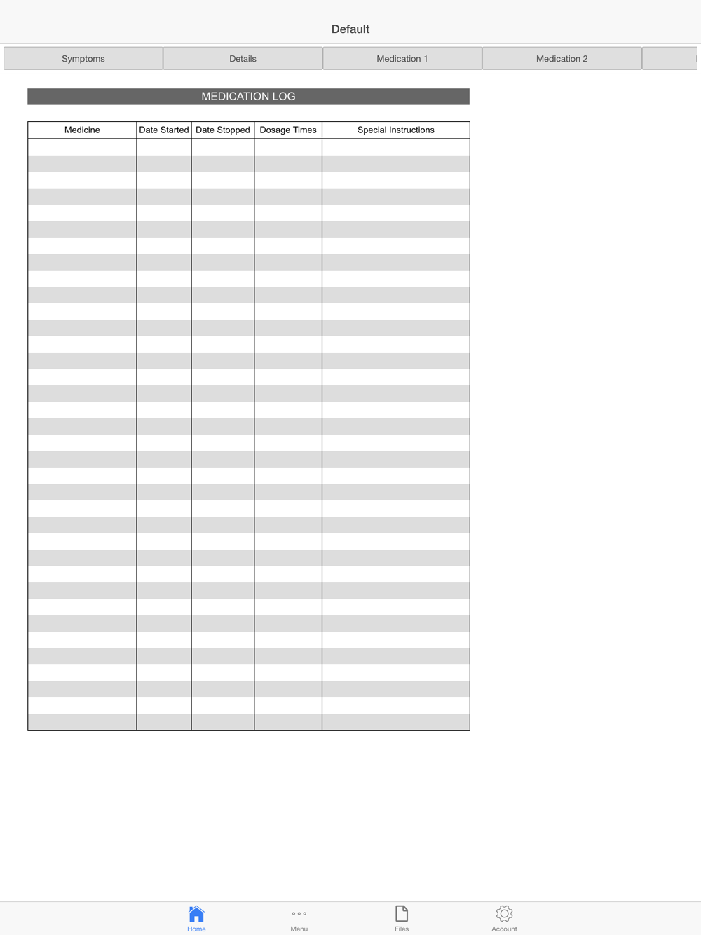 Medication log sheets: Add and edit details of your medicines like date, dosage times, quantities, etc. Provision has also been given for you to add any special instructions alongside.