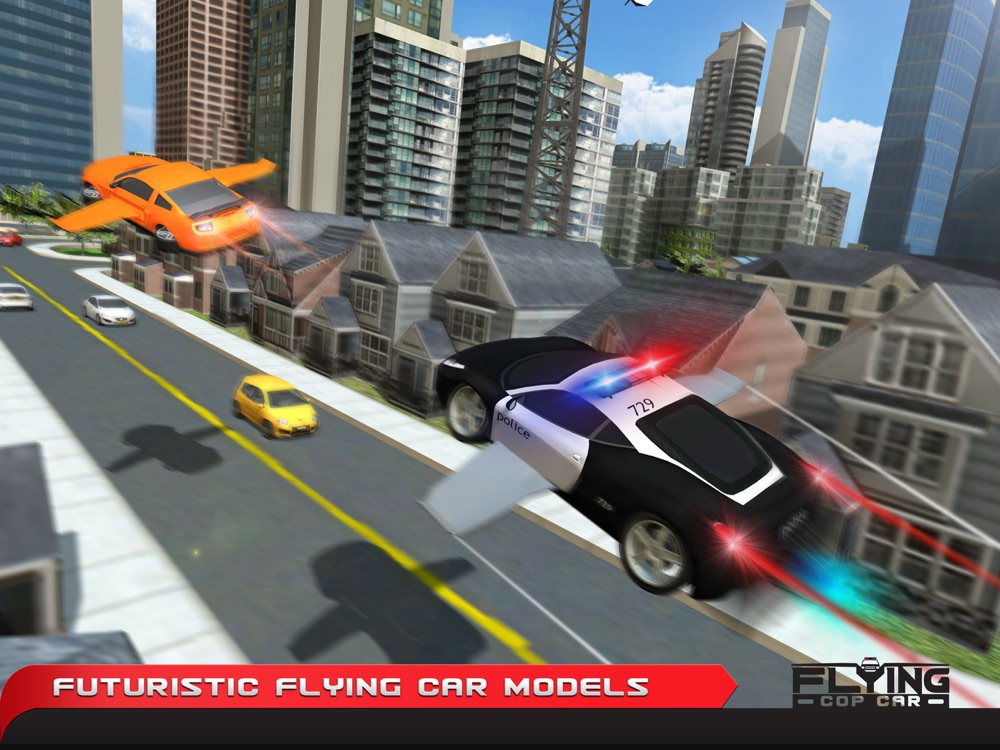 あなたが超帯電未来の空飛ぶ車で知名度の高い都市の犯罪者をキャッチするための例外的な3Dシミュレーションでパトカーを飛ぶことは、完璧な車のドライビングゲームです。
