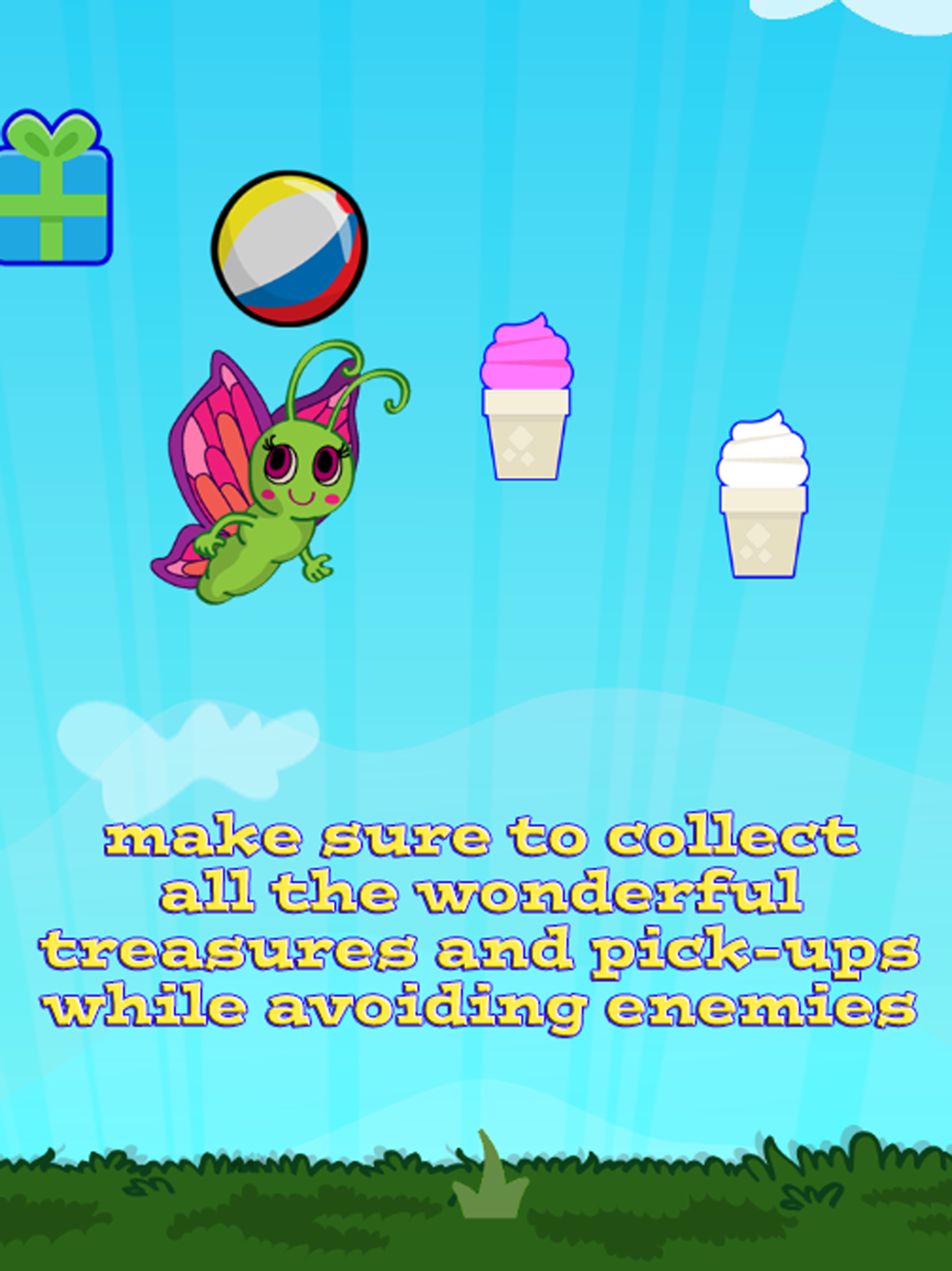 Make sure to collect all the wonderful treasures and pick-ups while avoiding enemies.