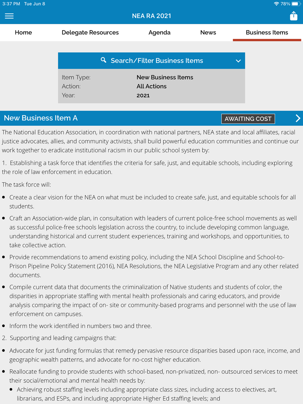 The official mobile app for the 2021 NEA Annual Meeting and Representative Assembly. View the RA agenda, business items under consideration, news from the virtual RA, streaming video from our speakers, and more!