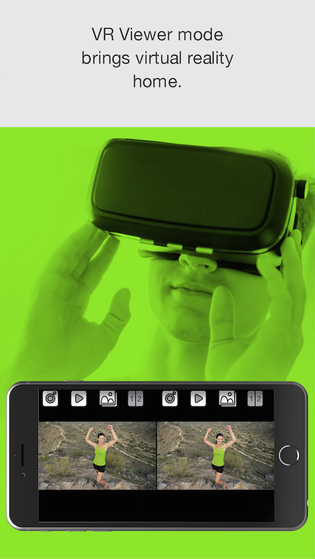 2. Records and shoots hi-def video and photo. VR mode option available.