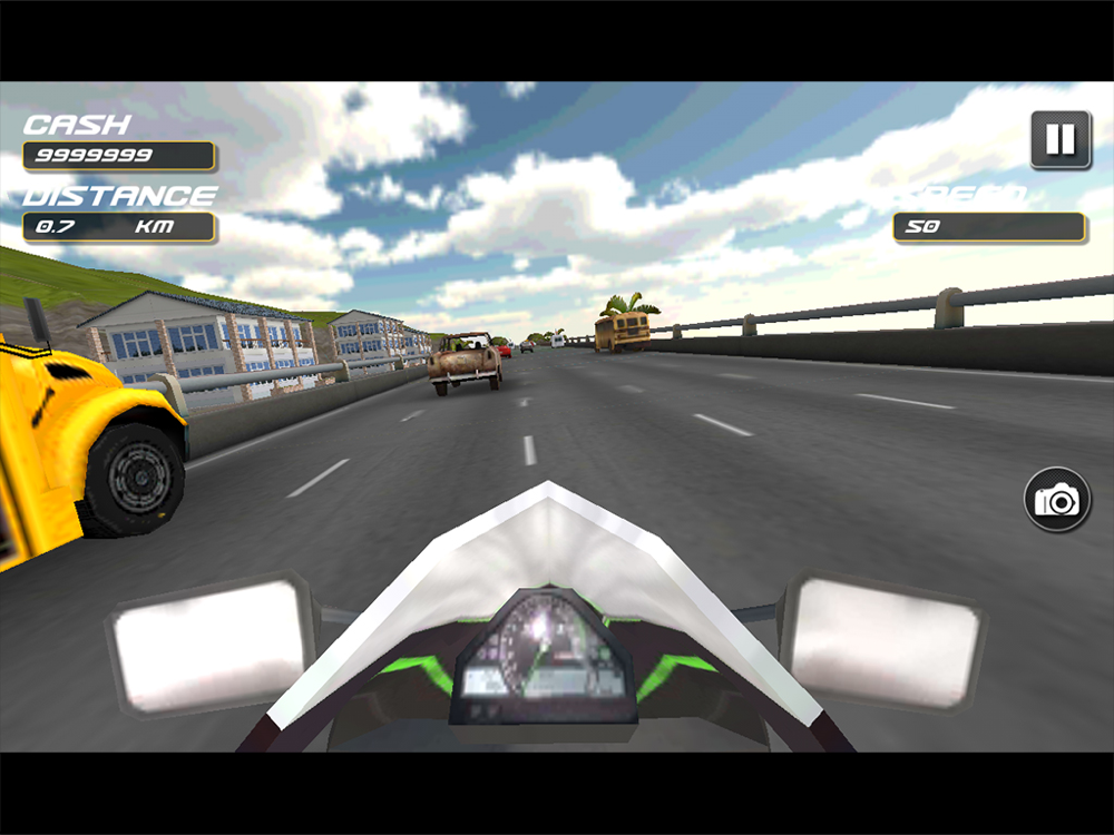 Rider On Highway is a bike riding game for moto sports lovers. Rider On Highway is an addictive new game in the genre of endless, unlimited arcade racing. Riding a Bike on busy highway is not easy until unless you are best and confident bike rider. Rider On Highway is equipped with best bike handling controls. Have fun while overtaking the cars, buses and trucks on busy highway. Dominate the busy highway with your fastest motorbike. You can update your motorbike by collecting cash and use this cash to unlock new and improved motorbike. On this busy highway avoiding and over taking the traffic at that very speed in your only chance.