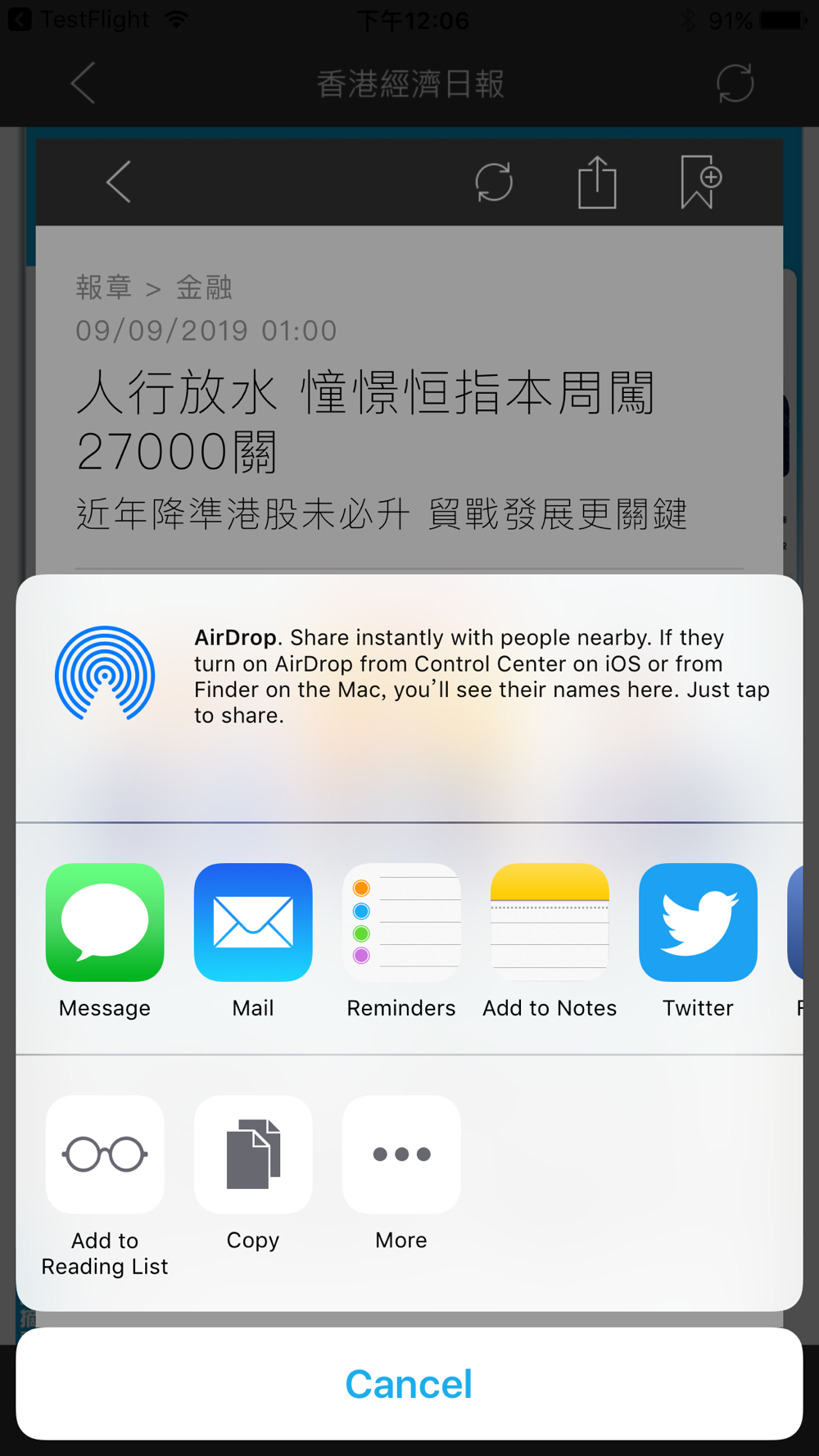 增加社交媒體分享。另外,整合剪報與 Facebook 分享功能,可儲存原版內容或分享予 Facebook 好友。