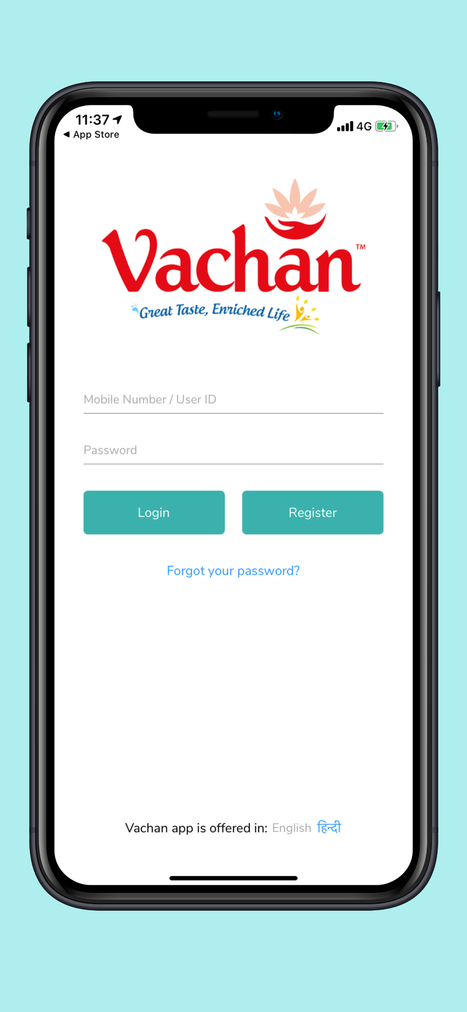 1. Install Vachan Home Delivery Service App and sign up with your mobile Number and complete address.