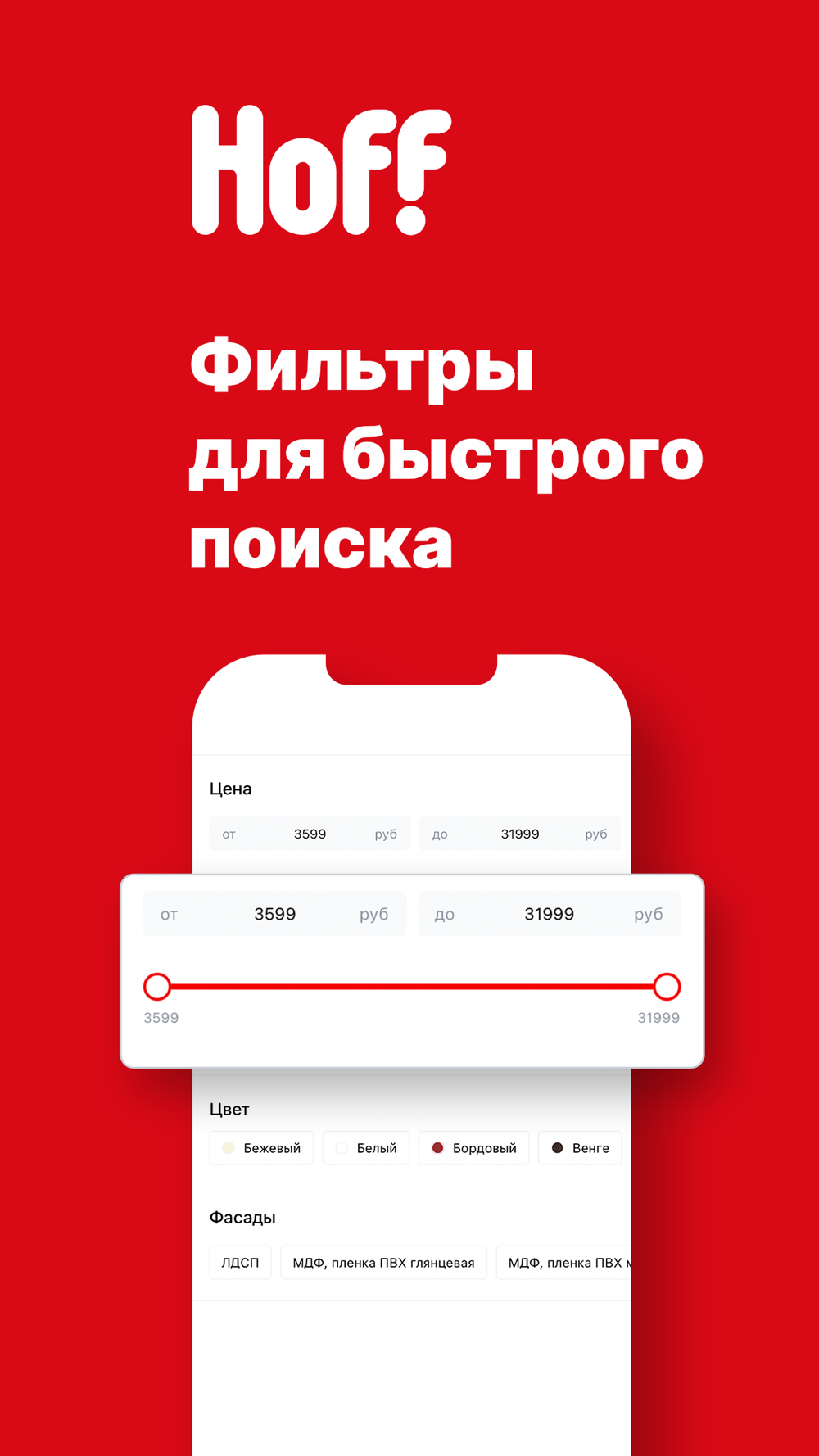 Покупки в интернет-магазине Hoff стали еще удобнее. Вы можете купить мебель для ванной комнаты и гостиной, кухонные гарнитуры, товары для детской комнаты, прихожей, спальни и многое другое. Все для вашего дома теперь в смартфоне!