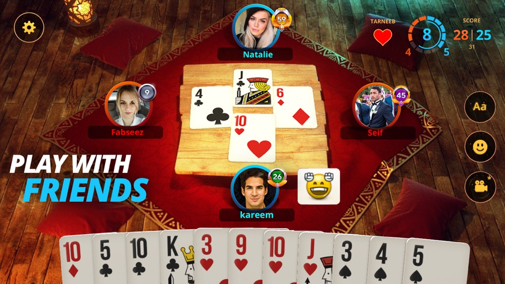 Play the classic game of Tarneeb with friends and family. Challenge others in the largest community of Tarneeb players, or level up to compete with elite players and prove you’re a true Tarneeb Master.