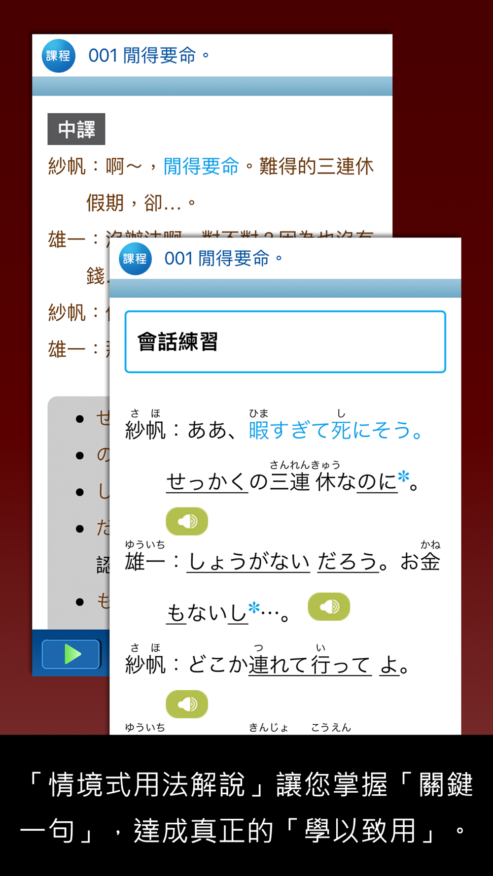 ● 會話可「逐句點選」播放,張大耳朵聽,訓練聽力語感。