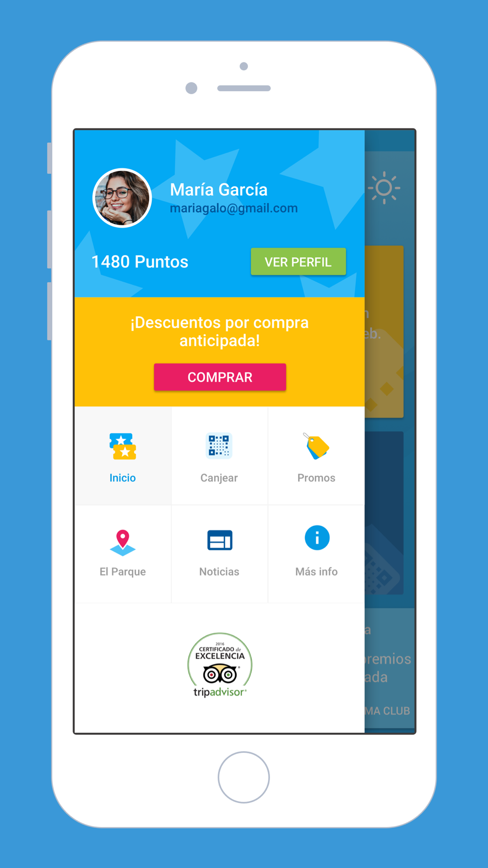 - Recibir notificaciones con ofertas especiales, canje de puntos, incidencias en el parque, etc.