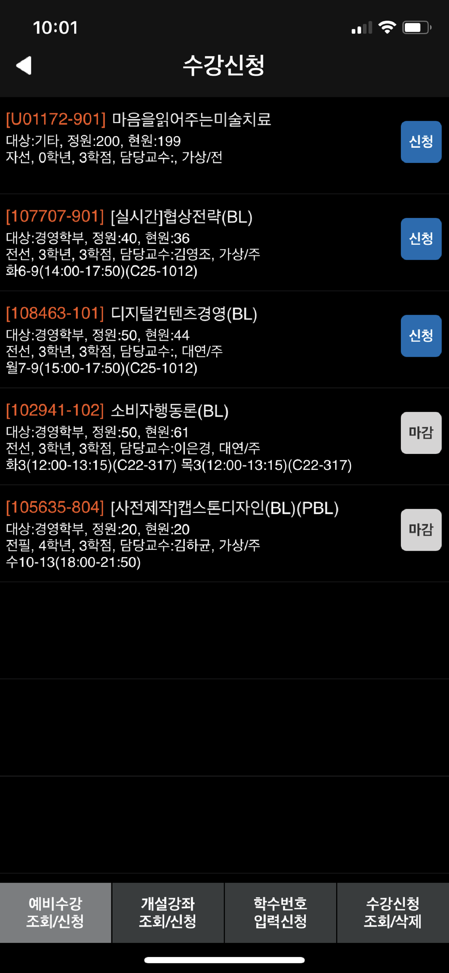 ■ 웹 수강신청과 중복 사용이 불가능 합니다.