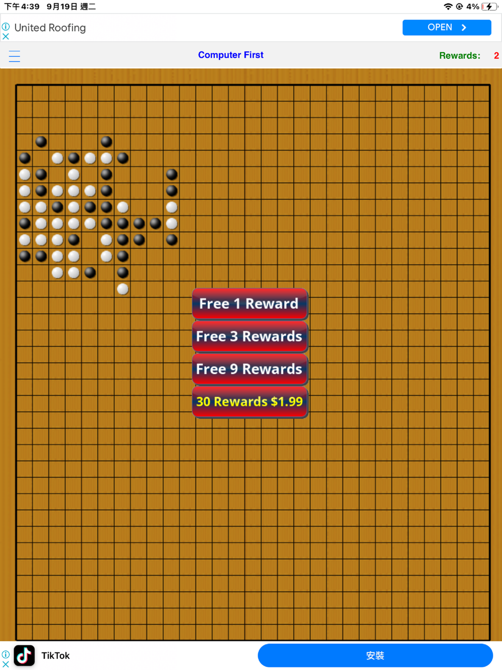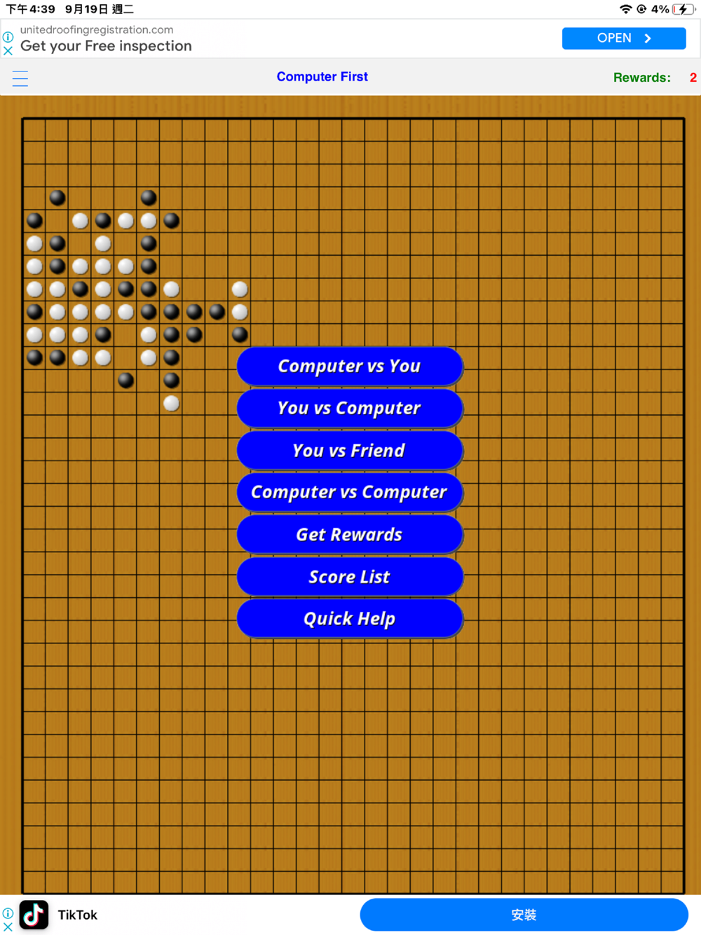 Gomoku is an abstract strategy board game. Also called Gobang or Five in a Row, it is traditionally played with Go pieces(black and white stones) on a go board. The rule is black plays first if white did not just win, and plays alternate in placing a stone of their color on an empty space. The winner is the first player to get an unbroken row of five stones horizontally, vertically, or diagonally.