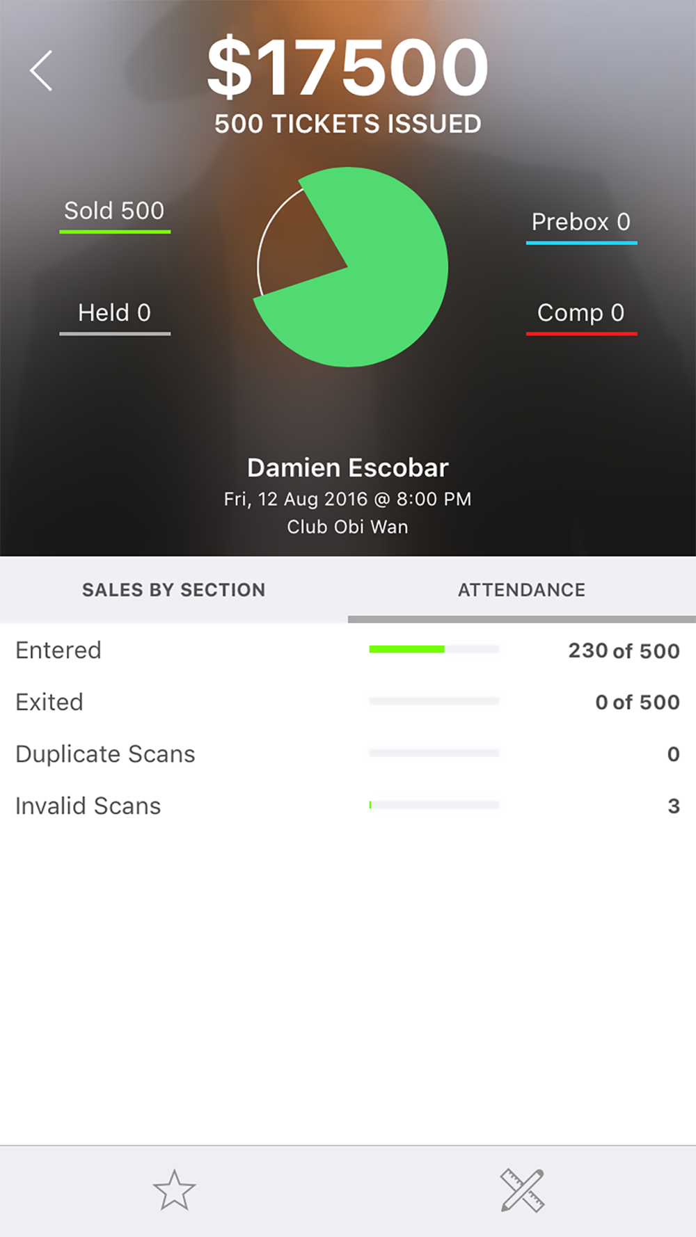 • Access event ticket counts, gross sales, attendance and more!