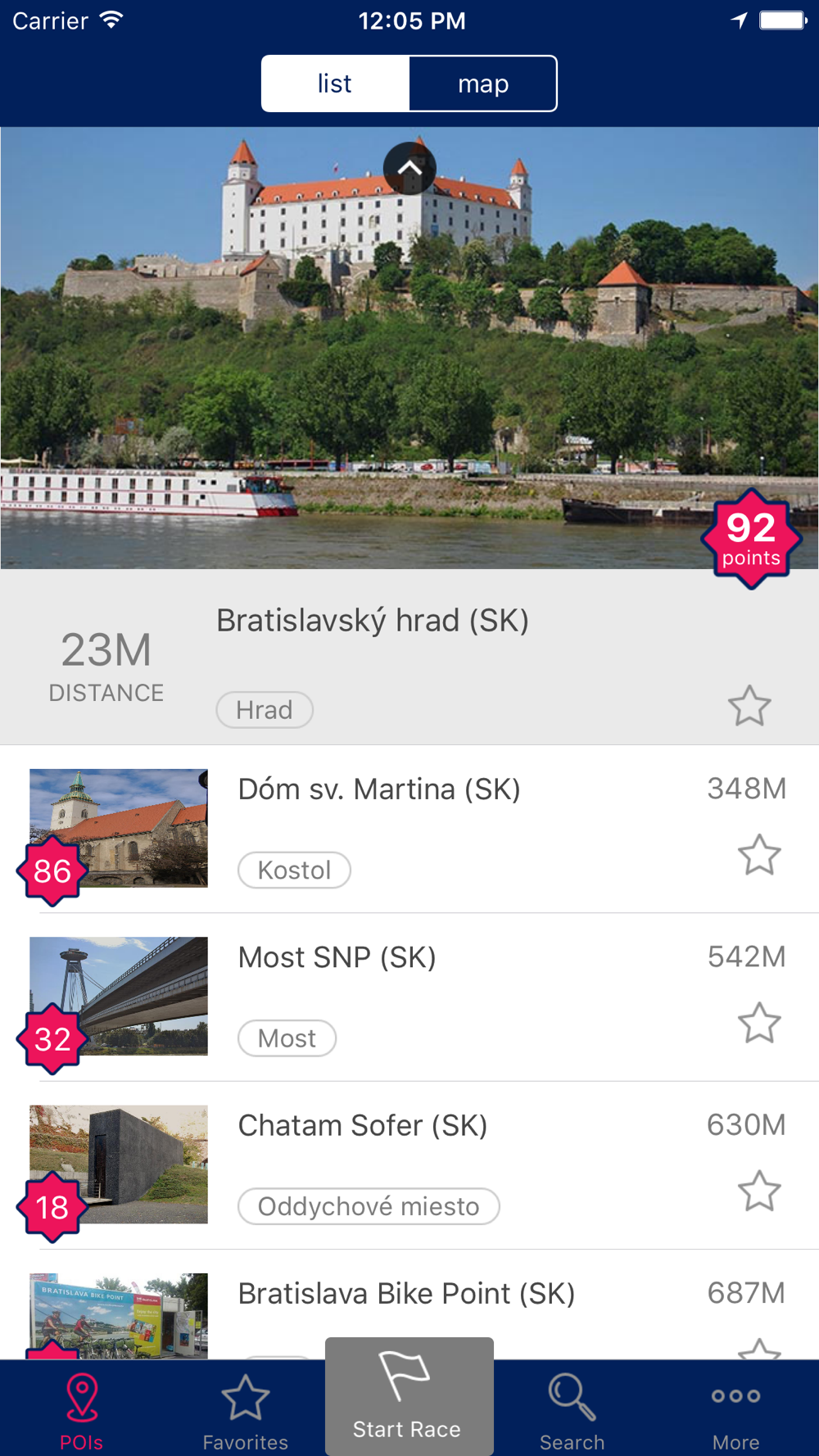Navštevuj zaujímavé a krásne miesta, za každé navštívené miesto získaš body.