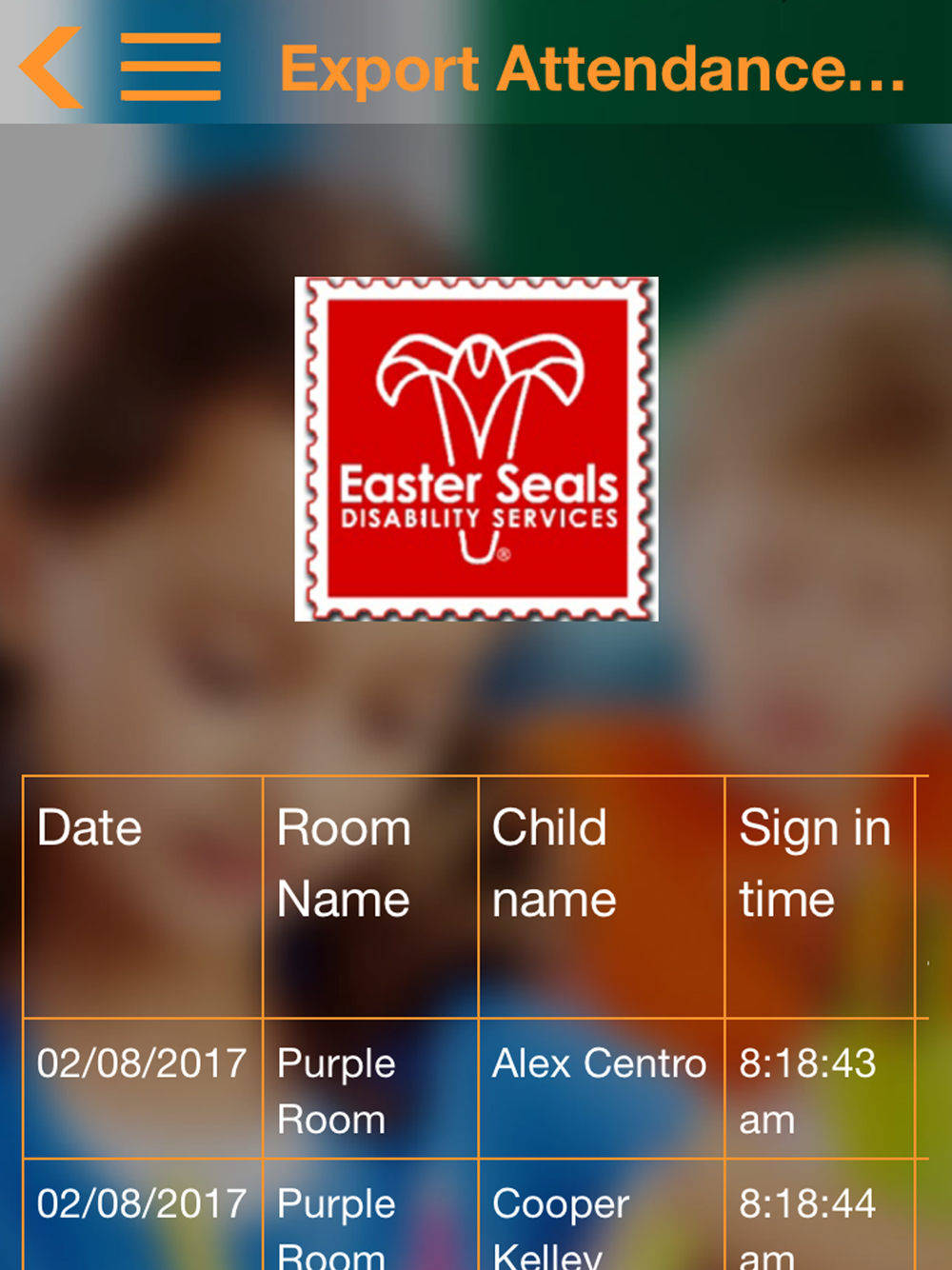 myKidzDay Attendance app allows parents, care providers and teachers to electronically check in and check out children. With a single swipe, parents and day care providers can take attendance using phones, ipads, and tablets. Directors can view real time class room ratios, pick up times etc. Parents can leave remarks and important pick up notes for the care providers.