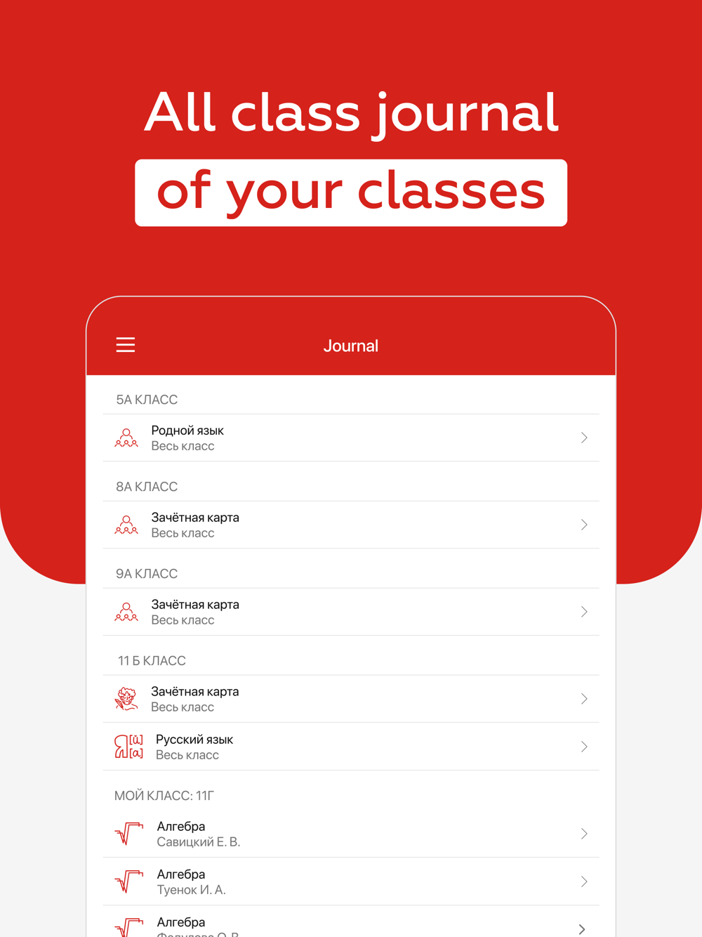 The application allows teachers to: mark subjects, edit topics and homework, correspond with colleagues, students and their parents.