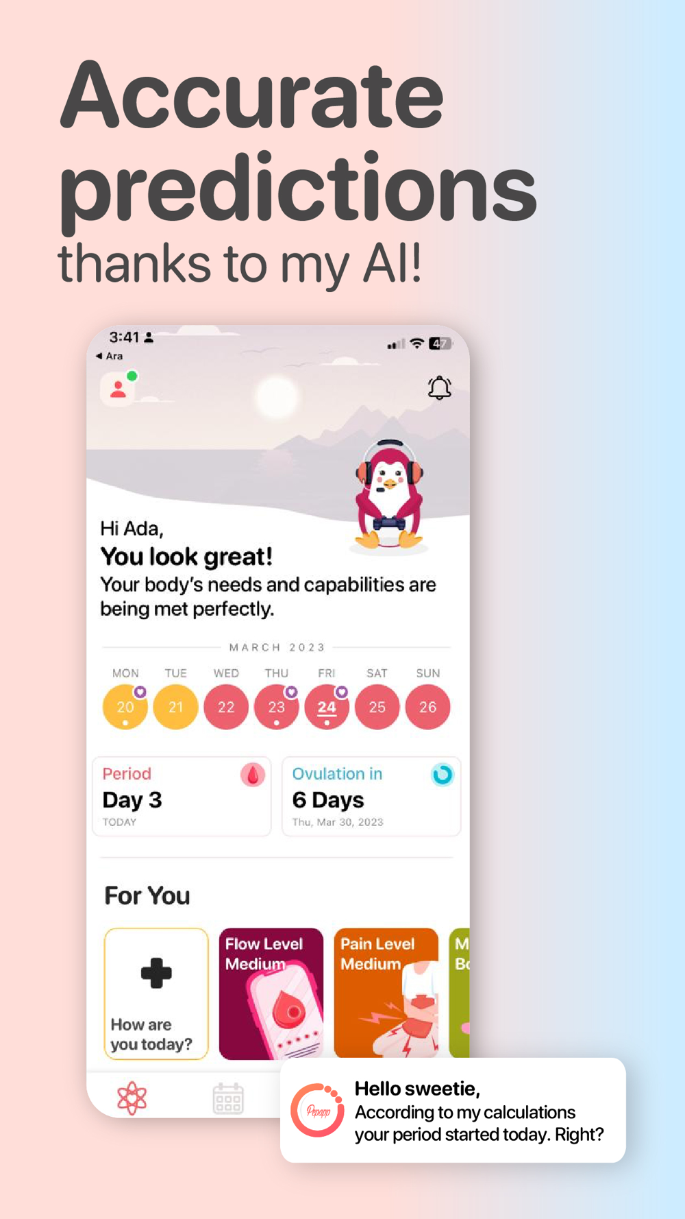 I'm Pepapp, I'm here to make your life easier and more enjoyable. I am so much more than just a menstrual calendar. From the first day you downloaded it, I am both entertaining and informing you with my recommendations every day. What else am I doing? Let's take a look!
