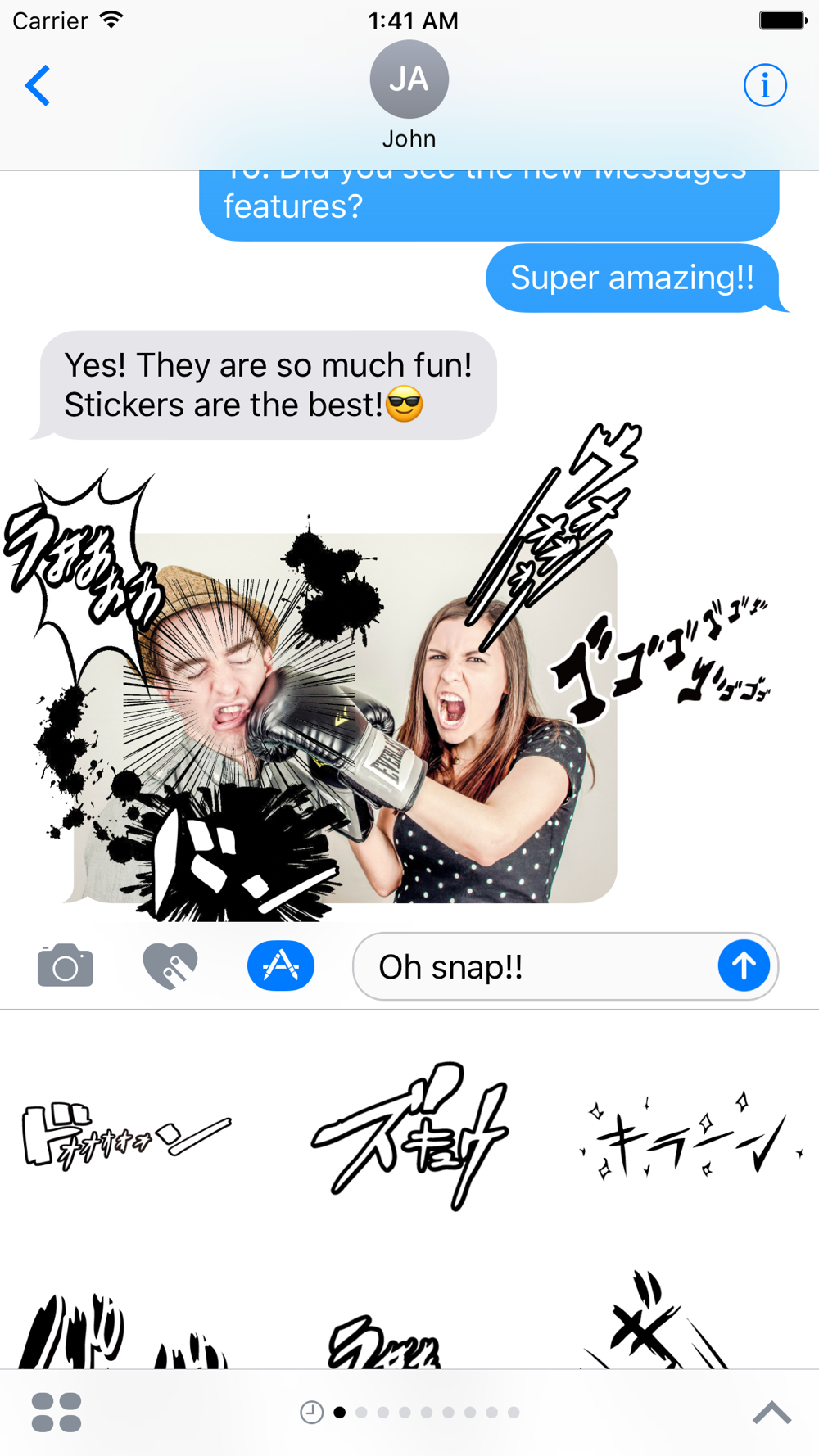 Say hello with this pack of Japanese Manga stickers. You can peel and place these stickers on anything in your conversation — bubbles, images, or even other stickers.