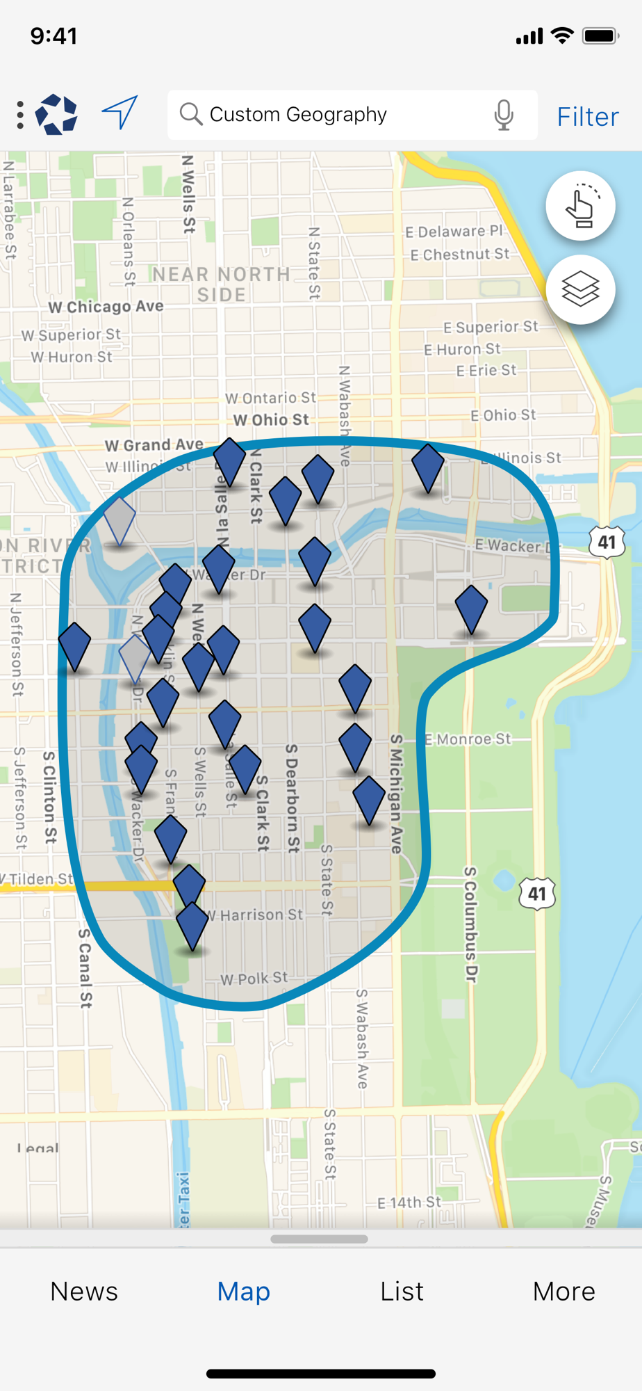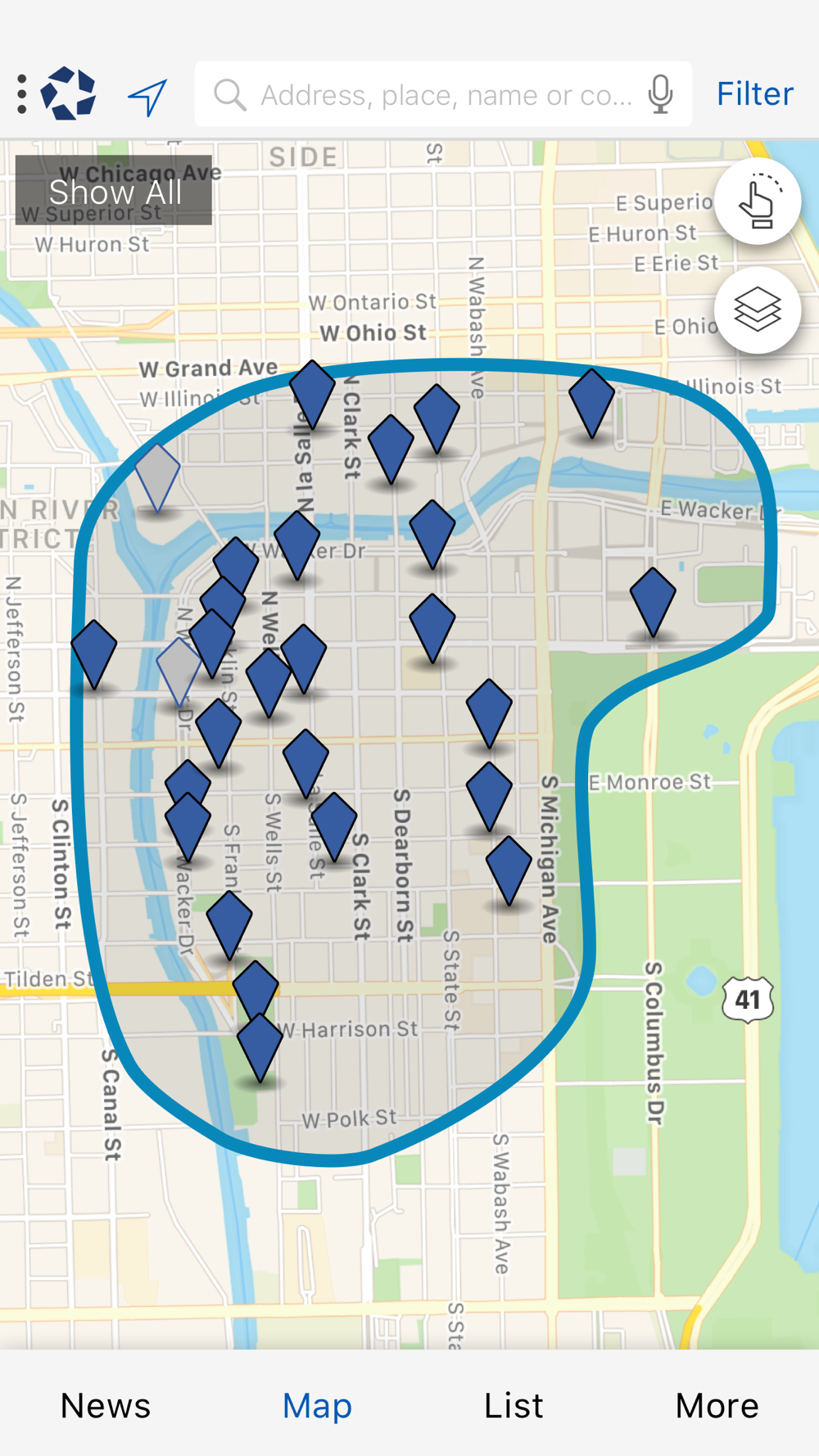 · Move the map with your fingers or do a lookup to change your search area
