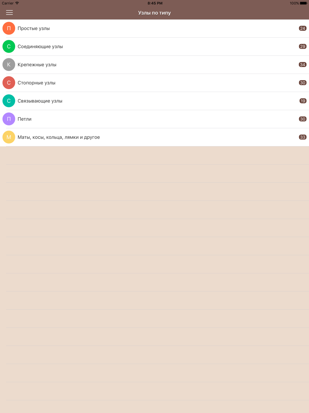 Приложение «Справочник узлов » - это справочник, в котором описаны узлы, применяемые в альпинизме, туризме, морском деле или на рыбалке, а также в быту. Справочник узлов имеет удобную навигацию, узлы разбиты на "узлы по типу": простые узлы, соединяющие узлы, крепежные узлы, стопорные узлы, связывающие узлы, пели, маты, косы, кольца, лямки; "узлы по области применения": рыбная ловля, лодочный спорт(мореплавание), спелеология(альпинизм), туризм, узлы общего назначения. Справочник дополнен интересной и познавательной информацией об узлах. В приложении реализован поиск узлов по наименованию.