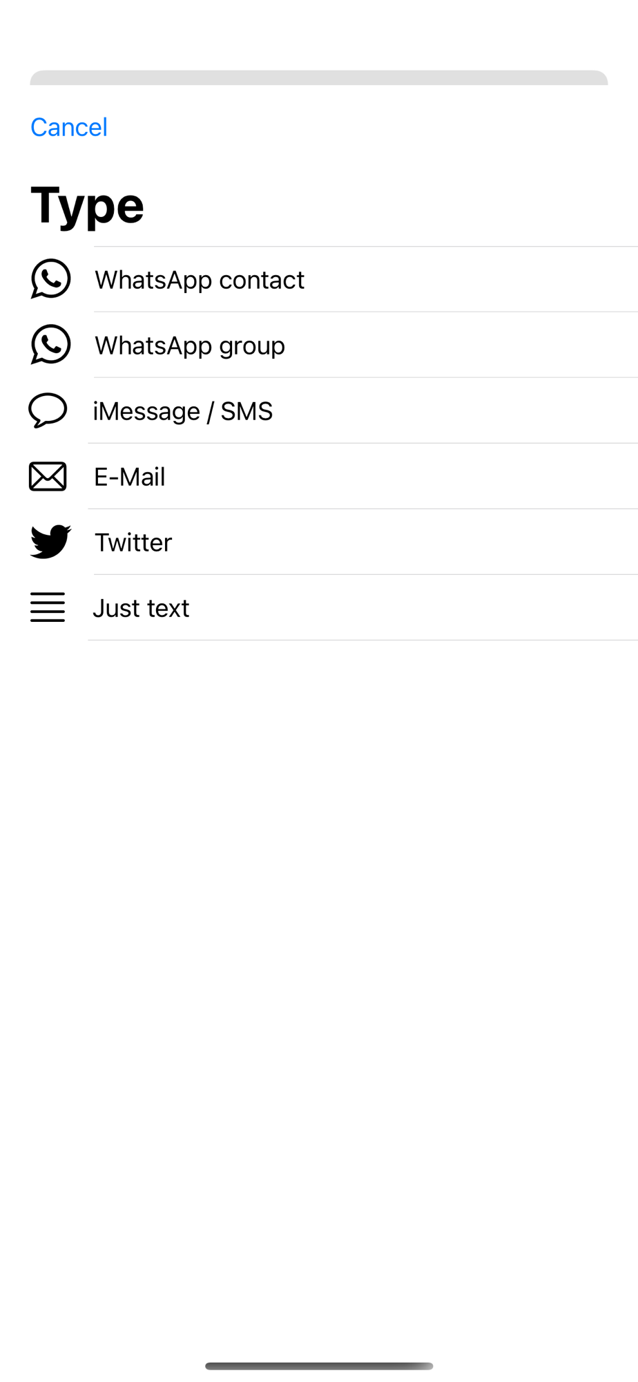 · Just Text (just write the message, choose the contact and messaging platform when sending)
