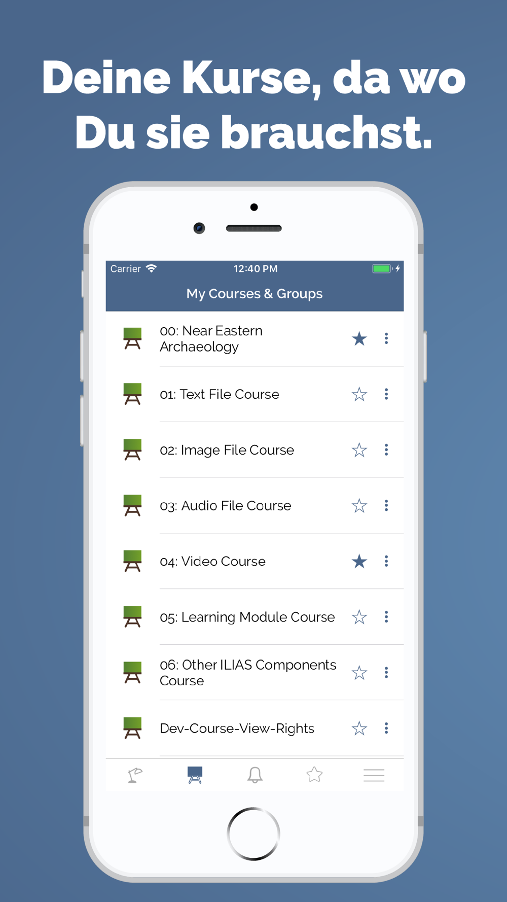 - Zugriff auf alle Objekte in deinen Kursen und Gruppen durch dynamischen Wechsel von der App in die Weboberfläche von ILIAS