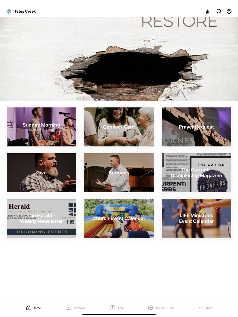 The Tates Creek Christian Church App was created with the Subsplash App Platform.
