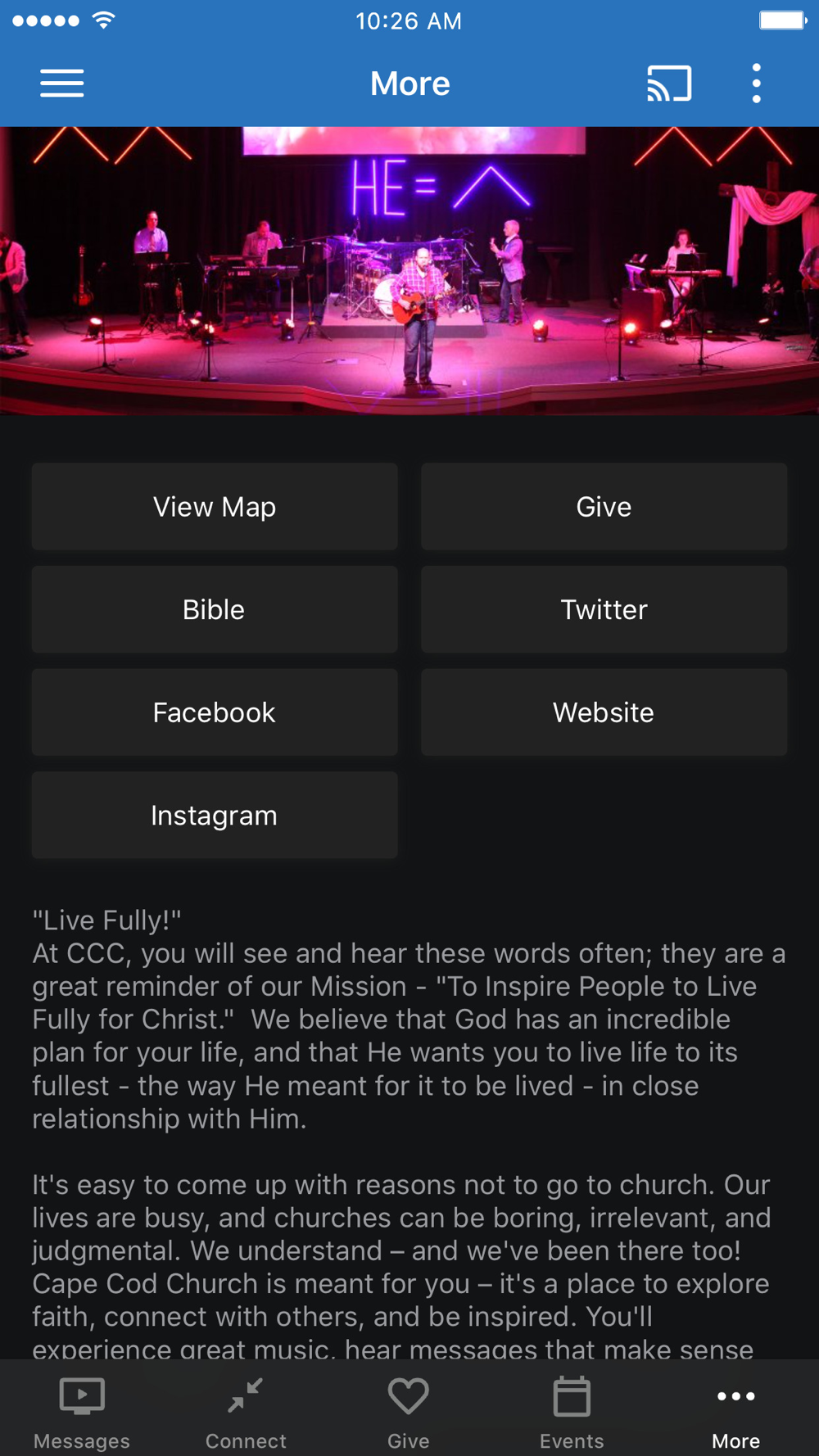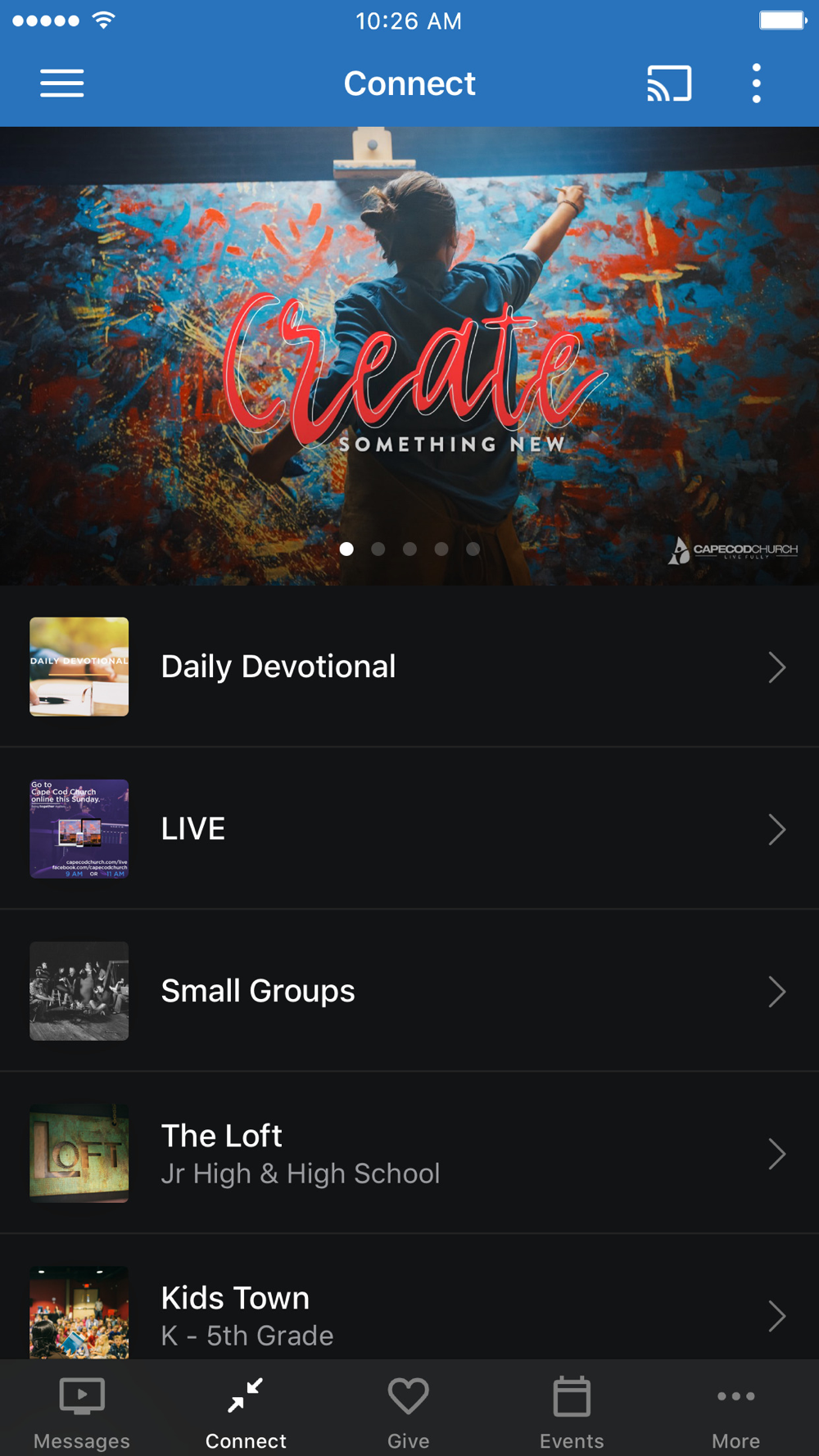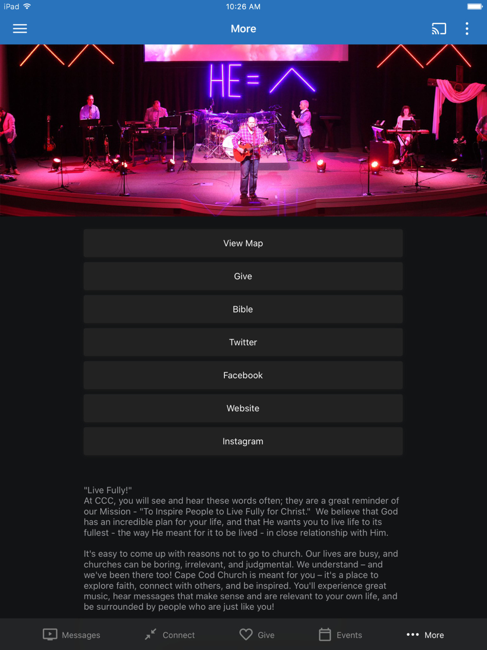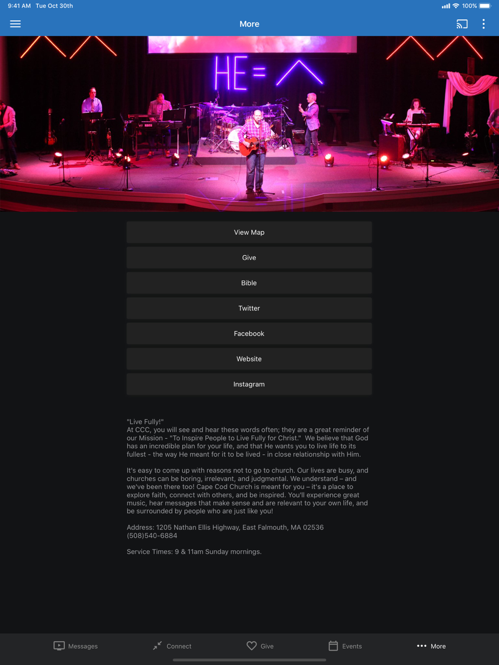 The Cape Cod Church App was created with the Subsplash App Platform.