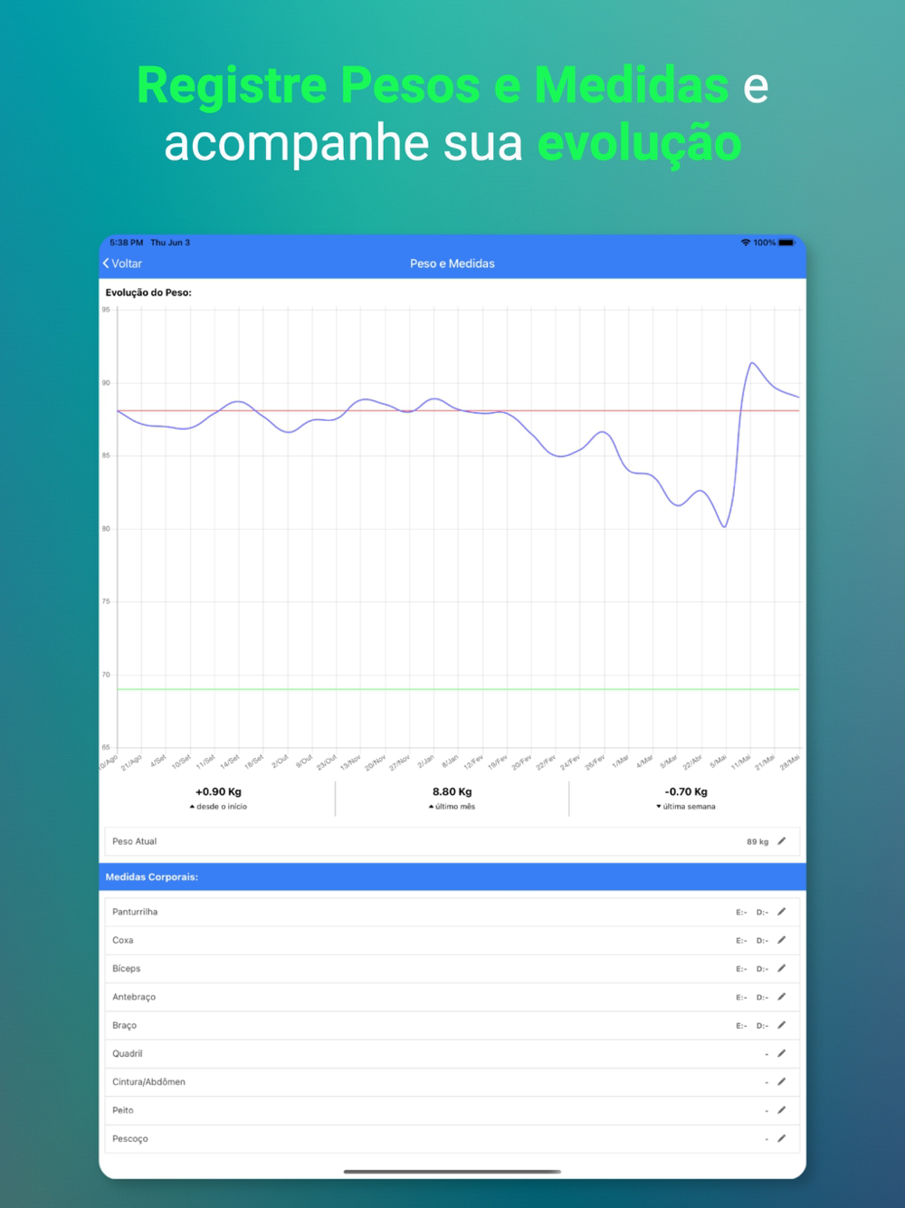 Confira a evolução do seu peso e medidas durante sua dieta para emagrecer e processo de reeducação alimentar.