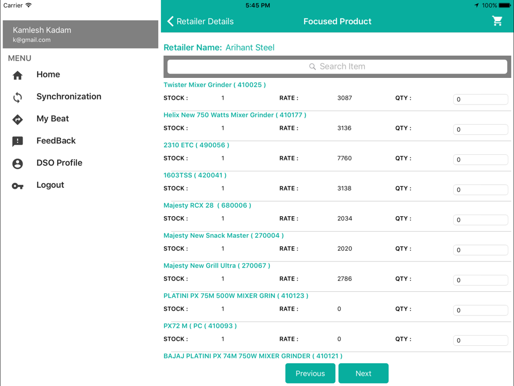 This App is for Distributor Sales Officers(DSOs) of Bajaj Electricals Limited which enables them to track their Permanent Journey plan(PJP), to monitor their customers Sales , Outstandings, Pending Sales Orders, capturing the Sales orders and collection data.