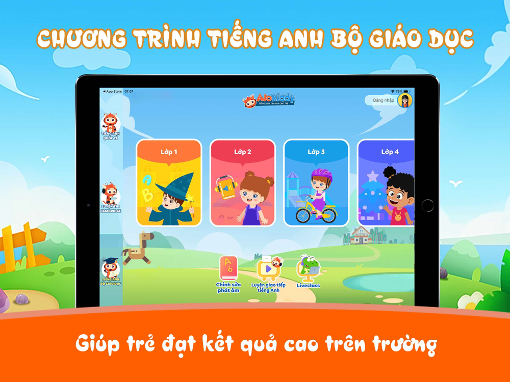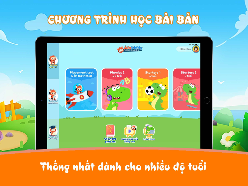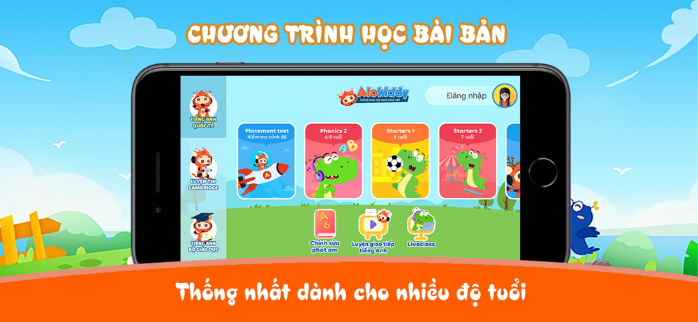 Alokiddy là một ứng dụng tiếng Anh cho bé uy tín, tiện lợi và chất lượng, với các khóa học tiếng Anh trẻ em dành cho độ tuổi từ 06 đến 11 tuổi, được xây dựng theo chuẩn Cambridge và chuẩn Bộ giáo dục, bao gồm: