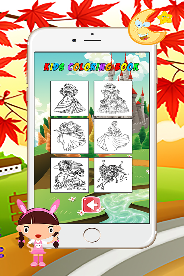 Kids Coloring Book there are 12 cute princess cartoon. Enhance their skills in creative design. There are beautiful photo. To increase children's imagination as well.