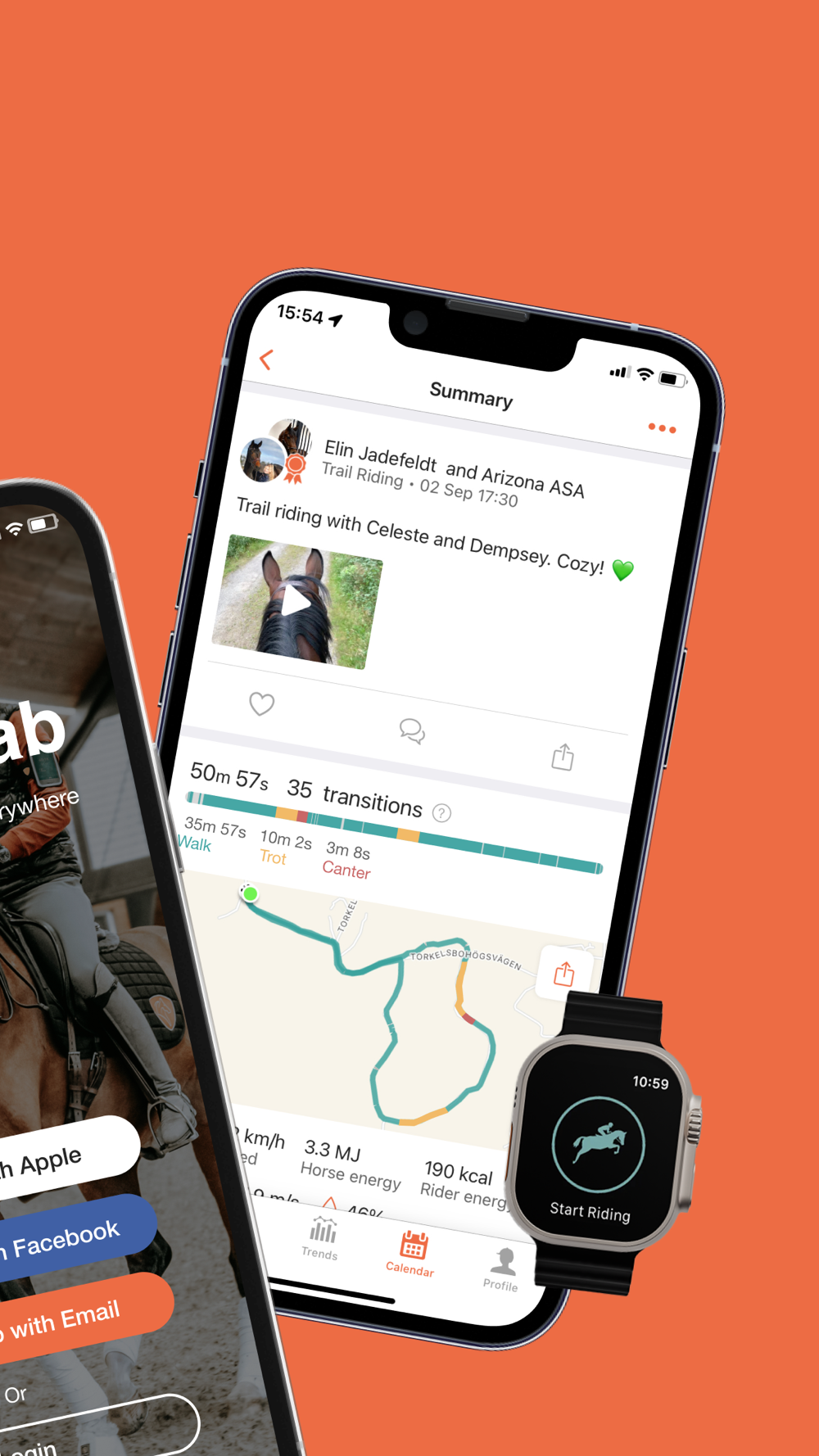 With Equilab, you can effortlessly track your training sessions just by taking your iPhone and/or Apple Watch with you when you ride. Our advanced gait analysis technology provides insights so that you and your horse(s) can continue to grow. (Equilab's Premium subscription allows users to track rides with just their standalone Apple Watch.)