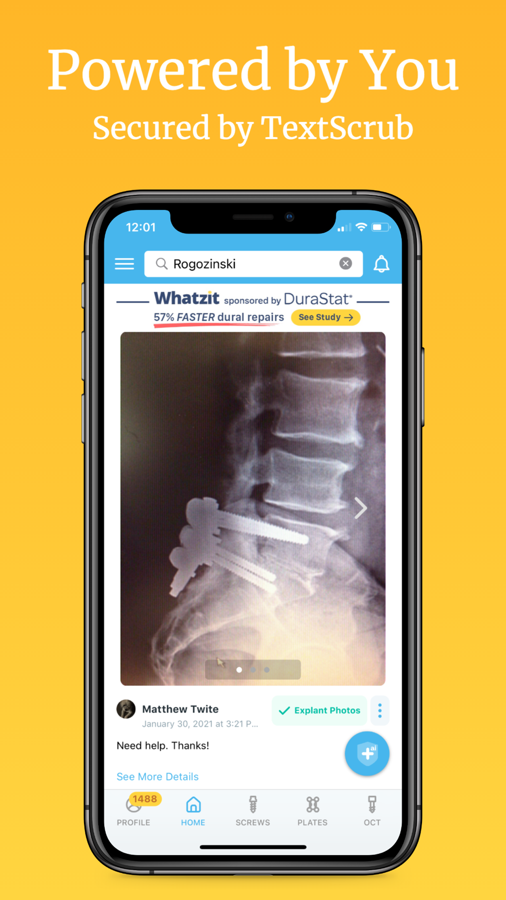 Featuring the proprietary TextScrub auto-redaction technology, Whatzit is the ONLY secure way to post X-rays for crowdsourced feedback.