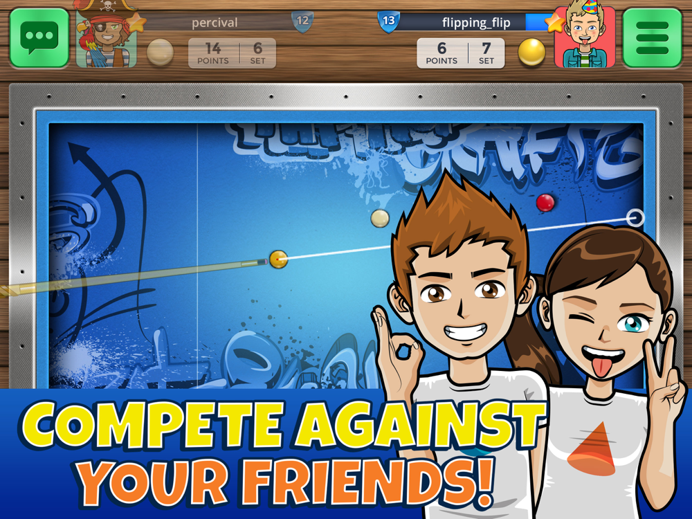 • It’s multiplayer, so you can challenge your friends and other Casual Arena carambole billiards players.