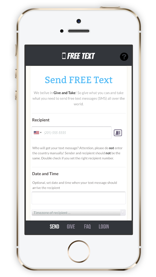 We belive in Give and Take! So give what you can and take what you need to send free text messages (SMS) all over the world.