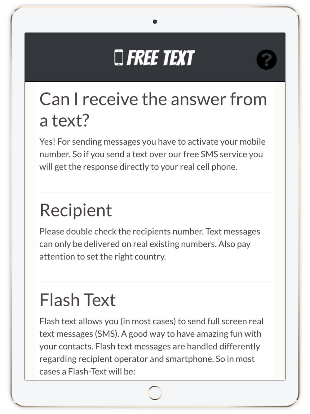 Free Flash text allows you (in most cases) to send full screen real text messages (SMS). A good way to have amazing fun with your contacts.