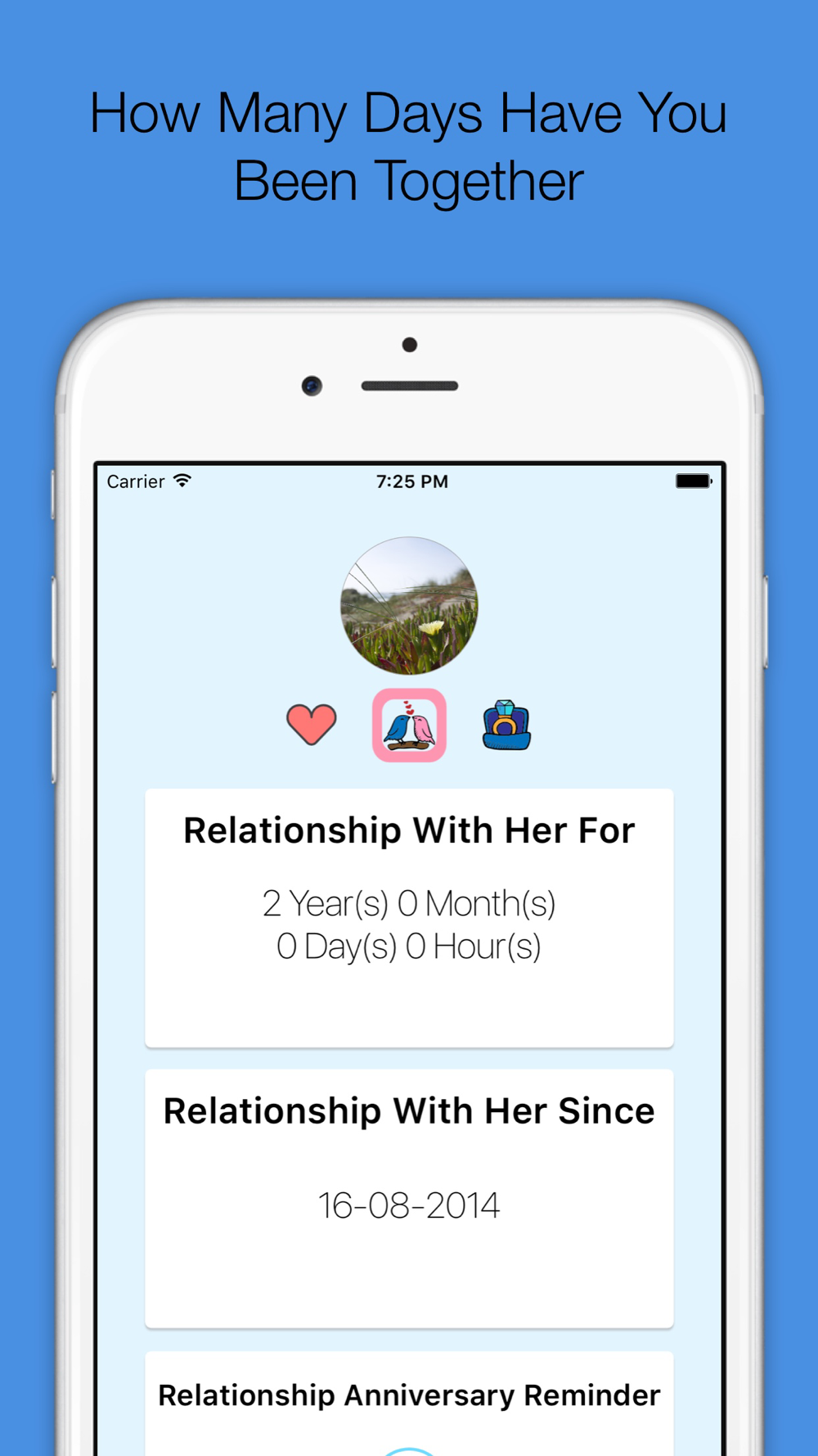 *App has three reminder for both Love,Relationship and Marriage Anniversaries.. You don't forget anymore :)