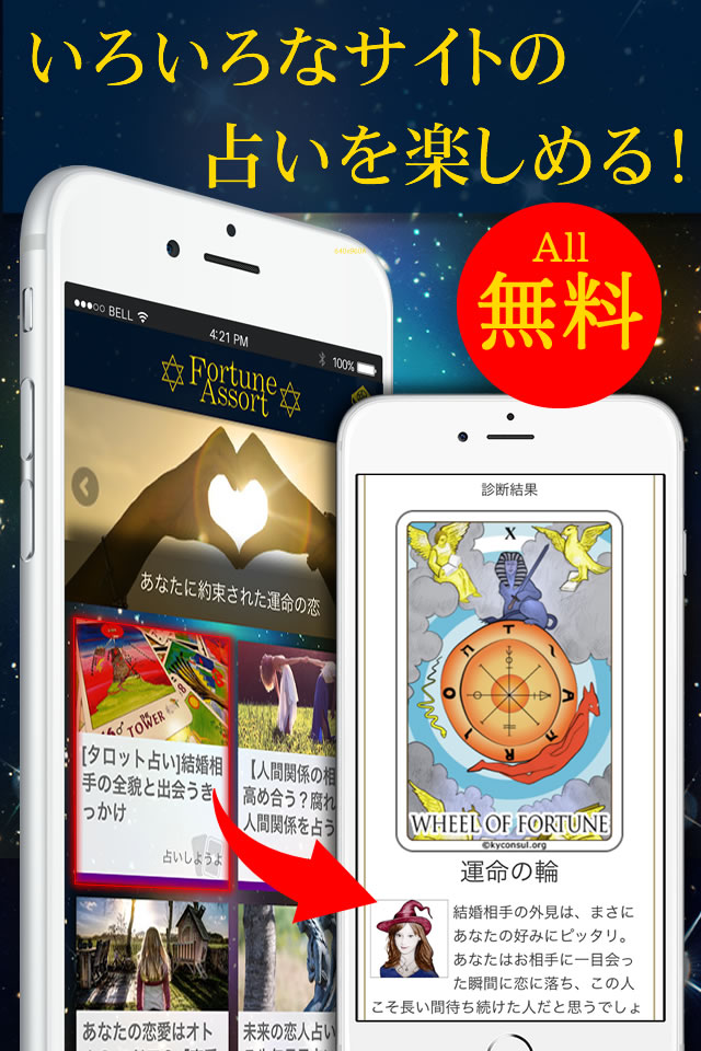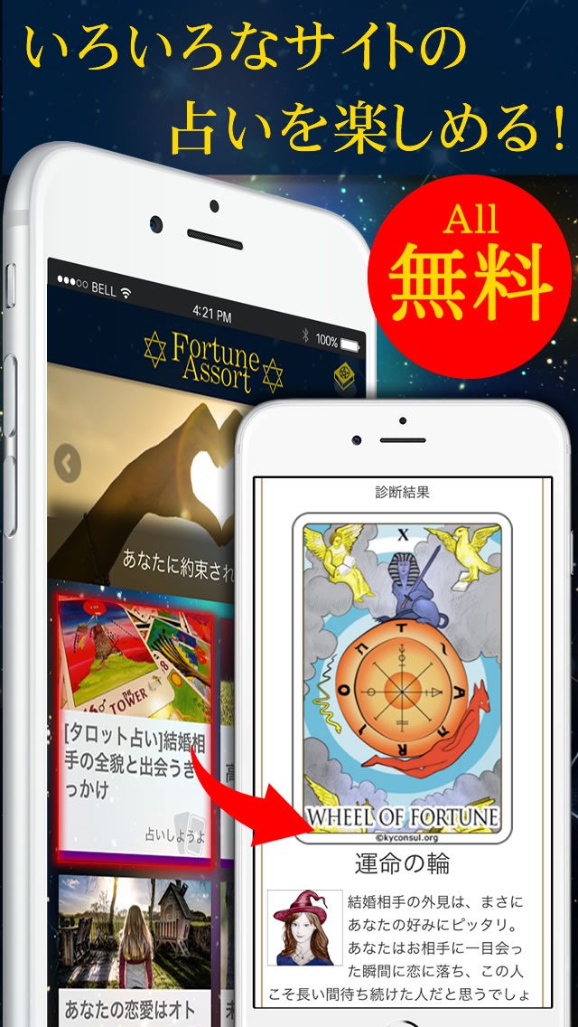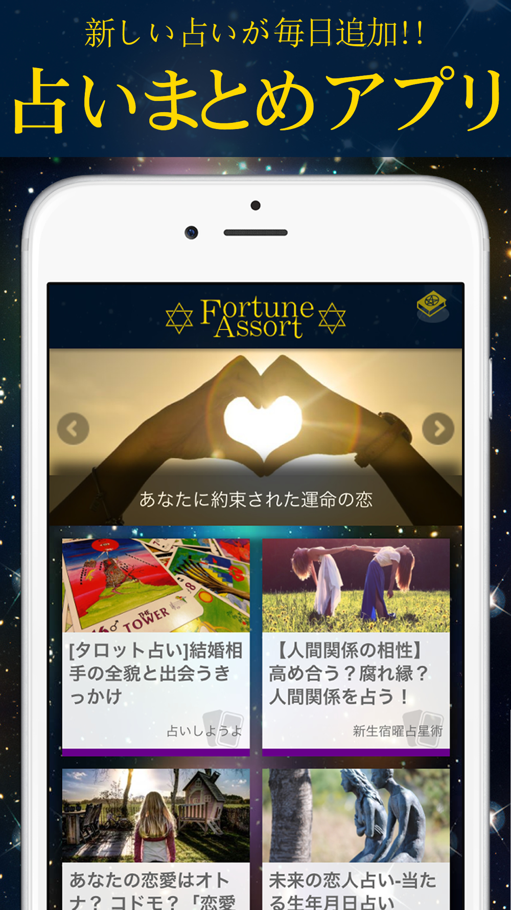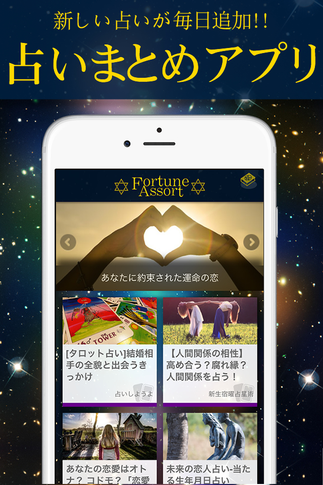 FortuneAssort(フォーチューンアソート)は、ネットで話題の占いを、無料でいち早くあなたにお届けする『占いまとめアプリ』です。