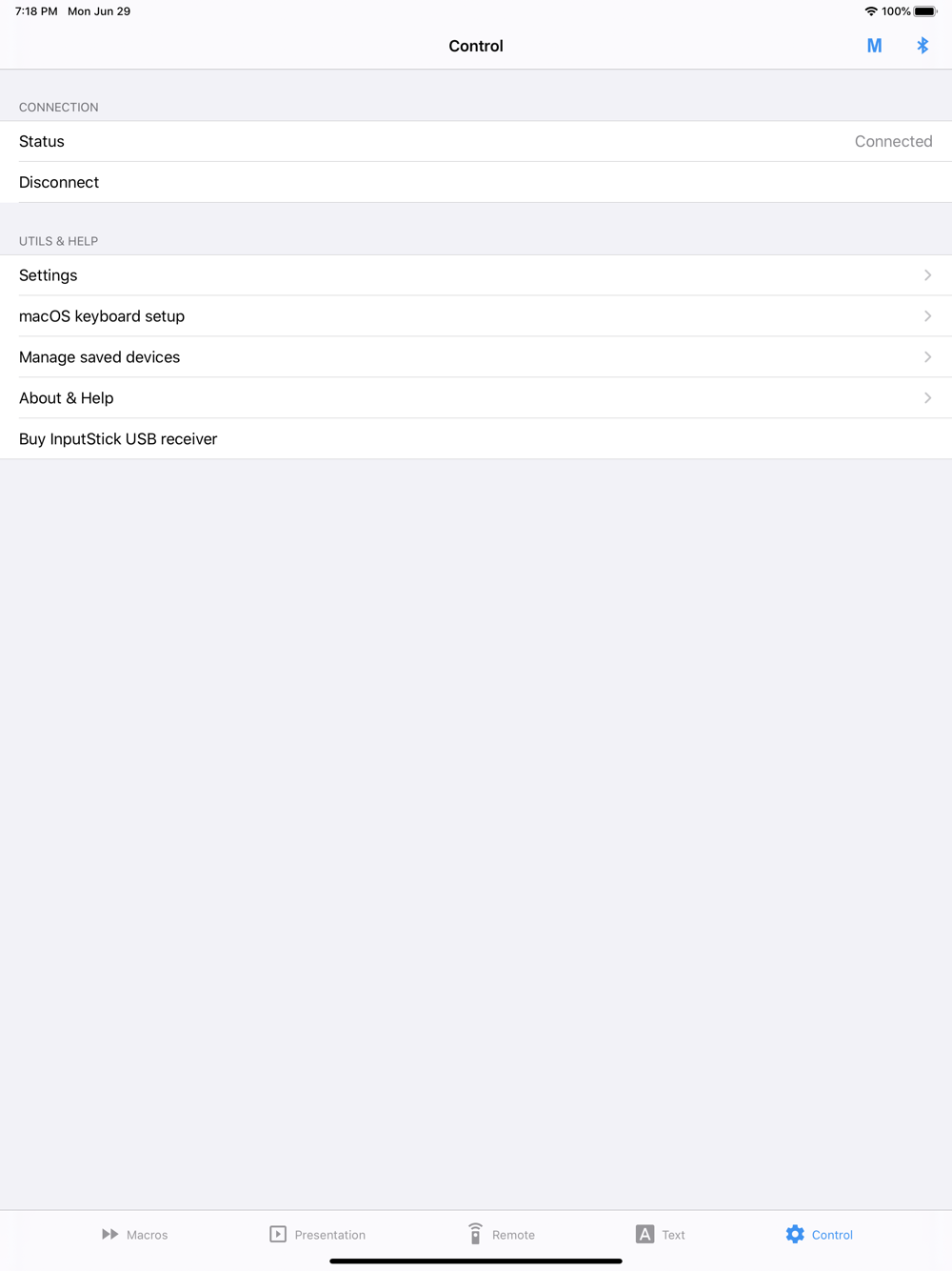 *** InputStick USB receiver (Bluetooth 4.0) is required! App does NOT work over USB cable! ***