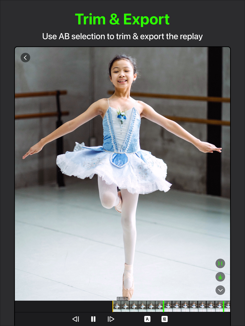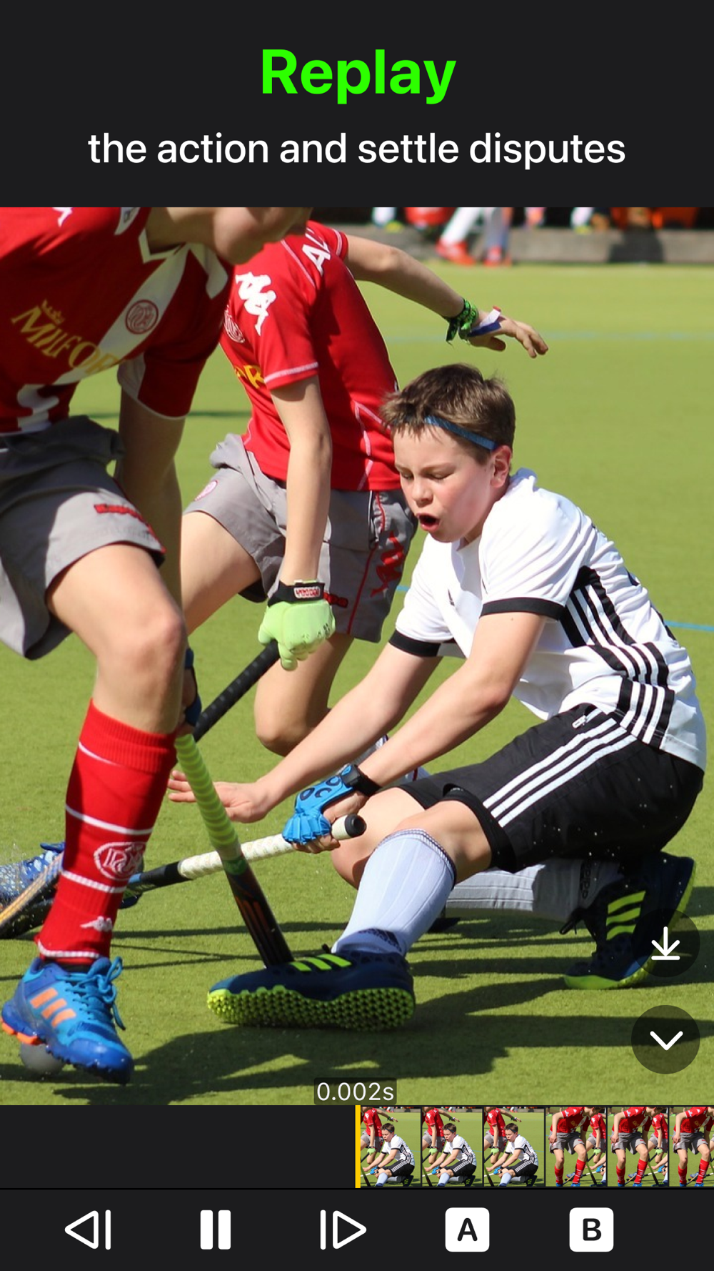 The REPLAY View allows quick analysis of the latest action. Play it in a loop or export section or the whole video.