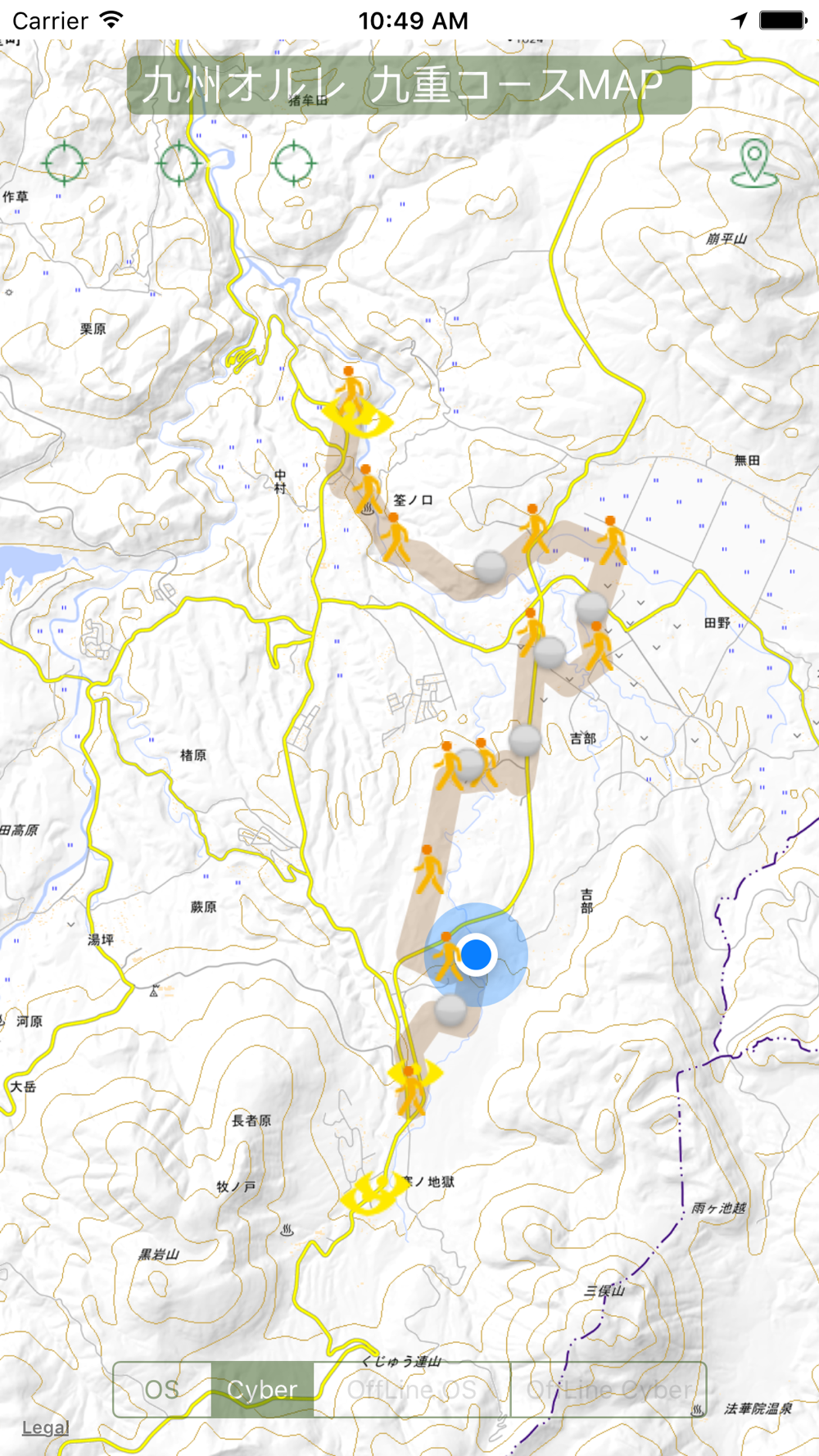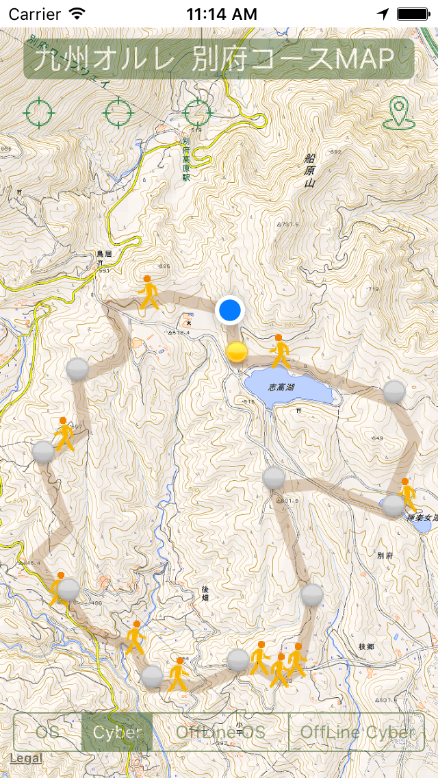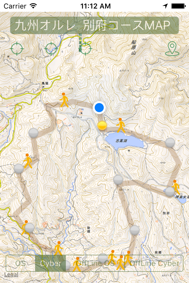 オープンストリートマップ及び国土地理院マップ(標高等)によるコース表示、現在位置表示、更にはコース周辺の地図を内蔵するオフラインマップ機能(別府コースのみ)等々により、あなたの踏破を適切にサポートします。