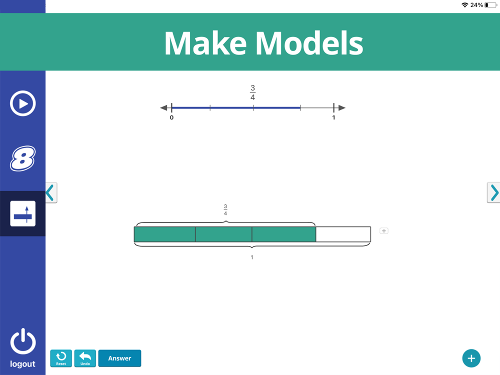 Teachley Problem Solving provides digital modeling tools to support students in building deep understanding of fractions. Students easily see their own lived experiences within the relevant, contextualized problems. The rich, visual models support strong mathematical discussions in the classroom.