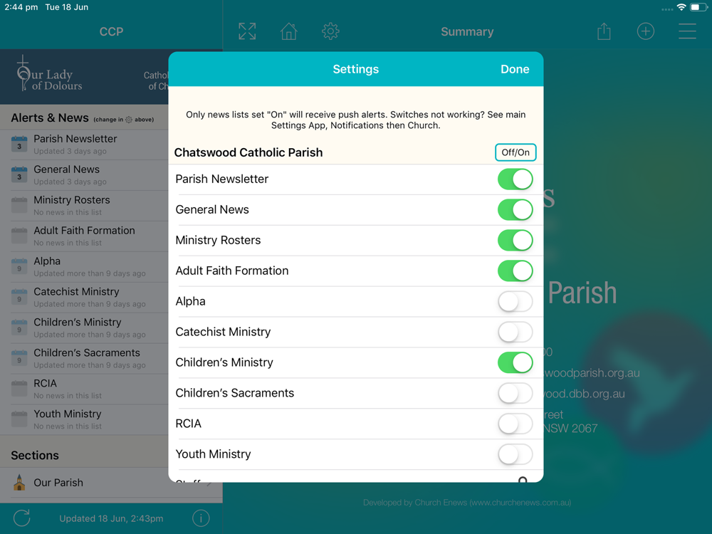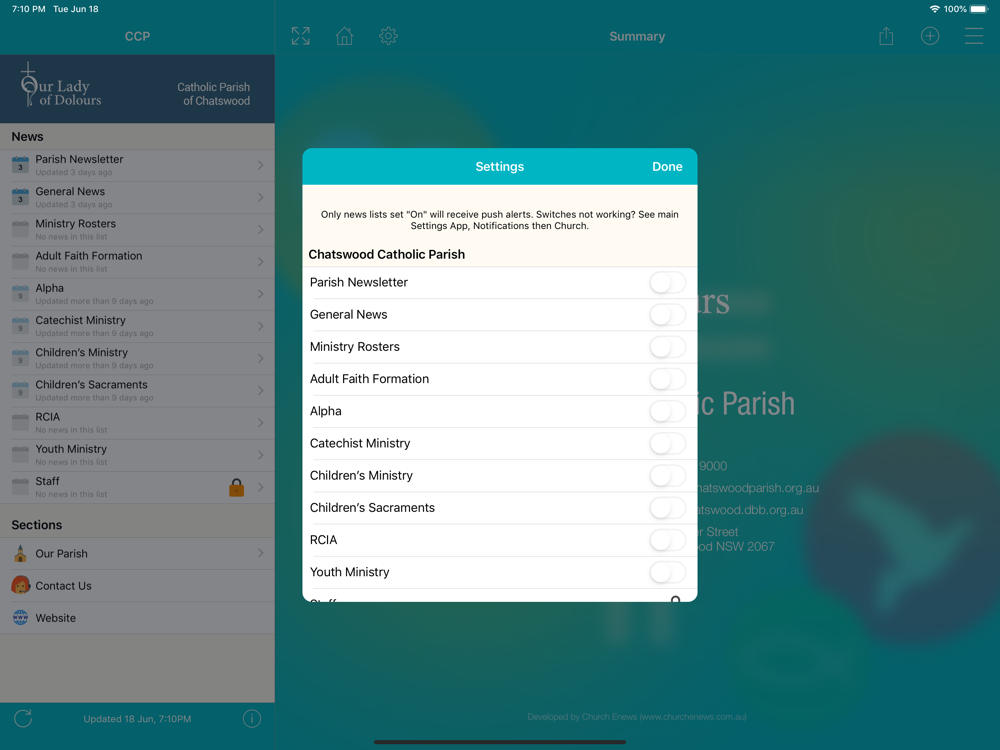 Developed by Church Enews. Website: www.churchenews.com. Made in Australia.
