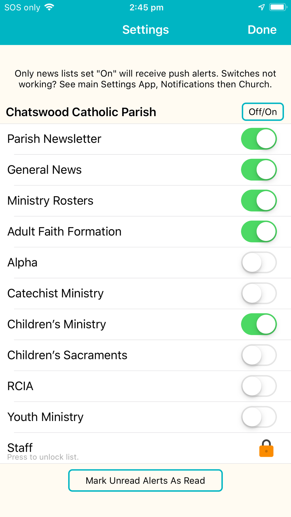 Now members, parishioners, public and staff can easily receive alerts, church news, notes, events and reminders in their pockets!