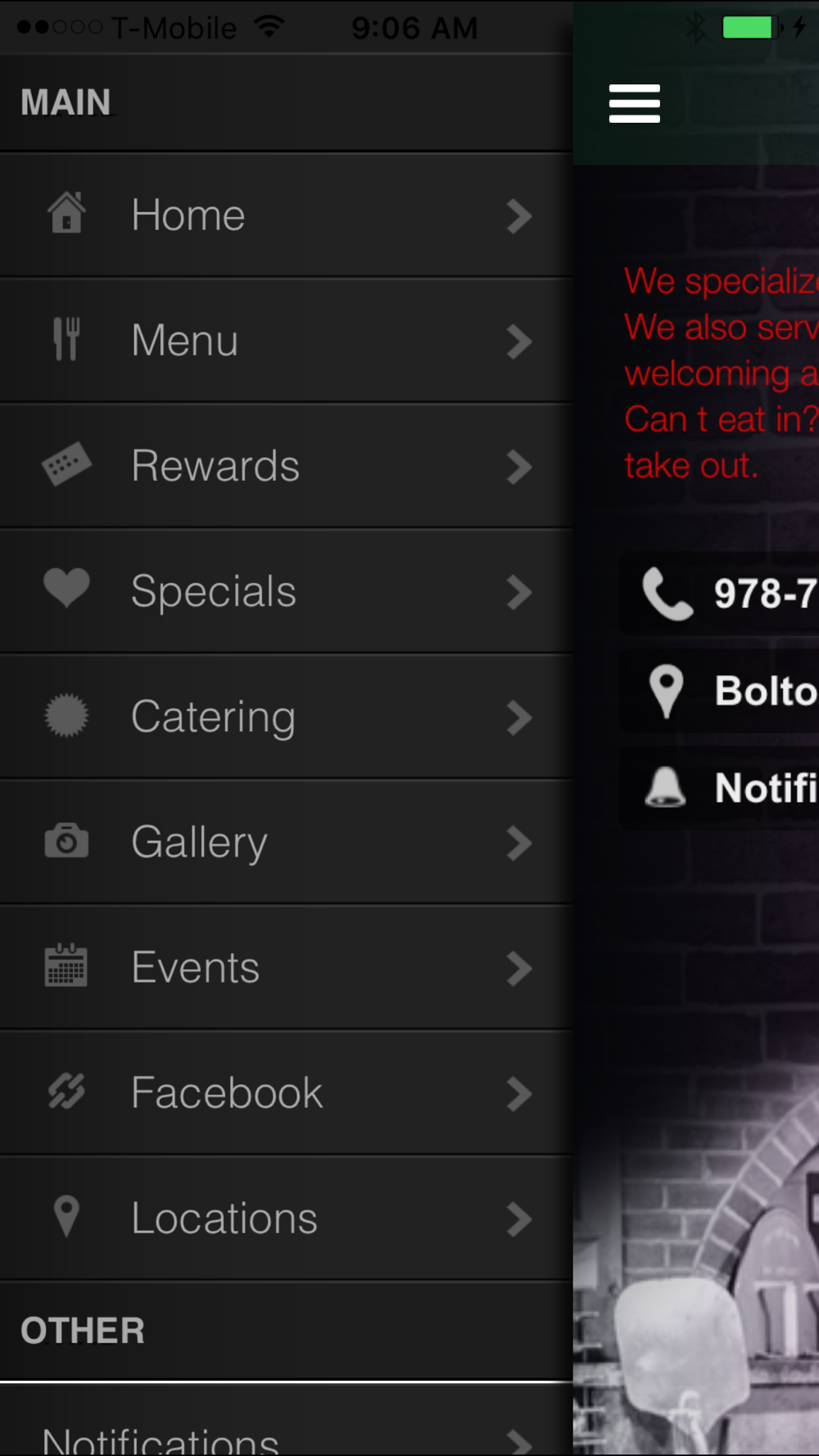 Download the App for delicious deals and a mouthwatering menu from Slater’s in Bolton, Massachusetts. Scroll through and check out the wide variety of plain and gourmet wood-fired pizza, smoked BBQ and wings – plus a nice selection of beer and wine. Special offers, catering ideas, an event calendar and more are right at your fingertips. Dine in, carry home a great meal, relax on the patio – or enjoy your next party even more with custom catering! Tap the App for: