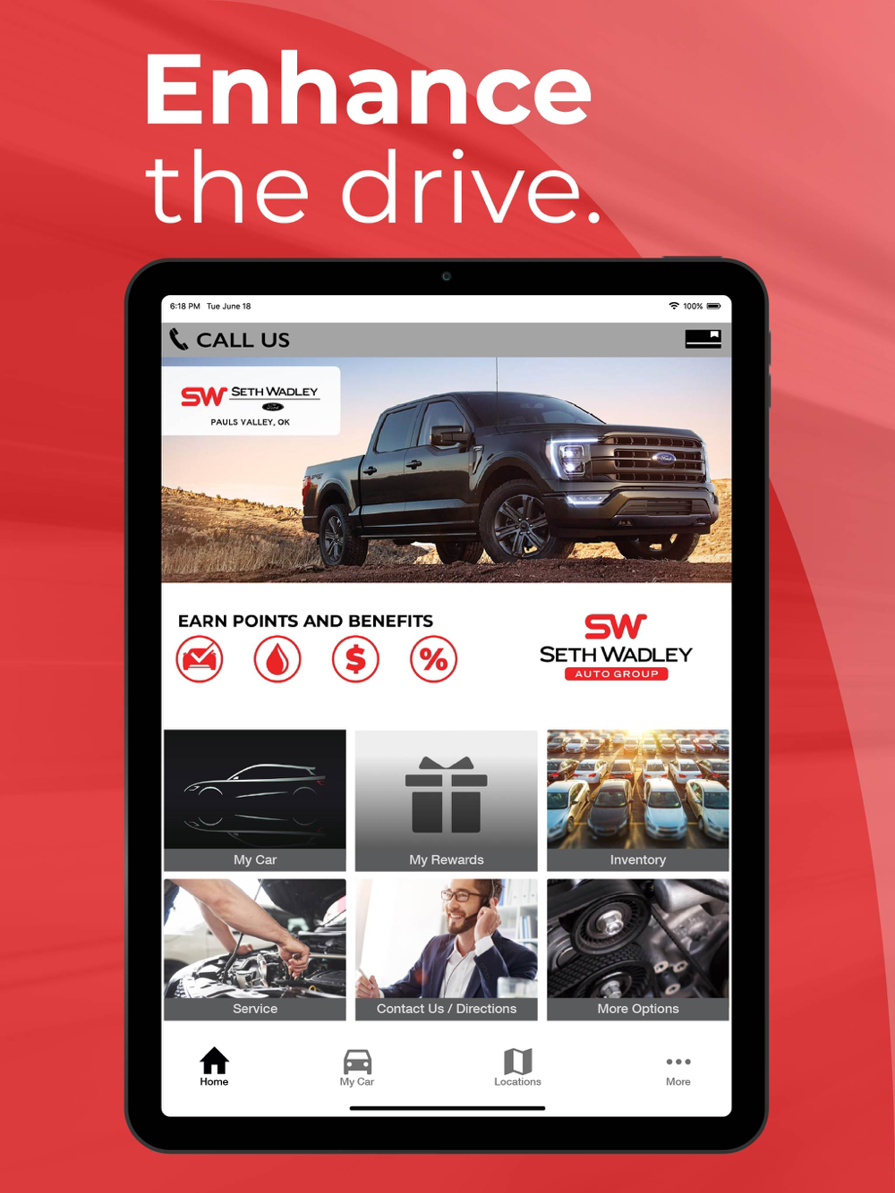 The Seth Wadley Auto Group Mobile App is designed for customers of our Rewards program. The dealership has locations in Pauls Valley OK, Ada OK and Perry OK. This app allows you to view and track your participation in the dealership's Rewards program and to view the service history of your vehicle. In addition, you are eligible for exclusive deals on service made available only to Mobile App Users!