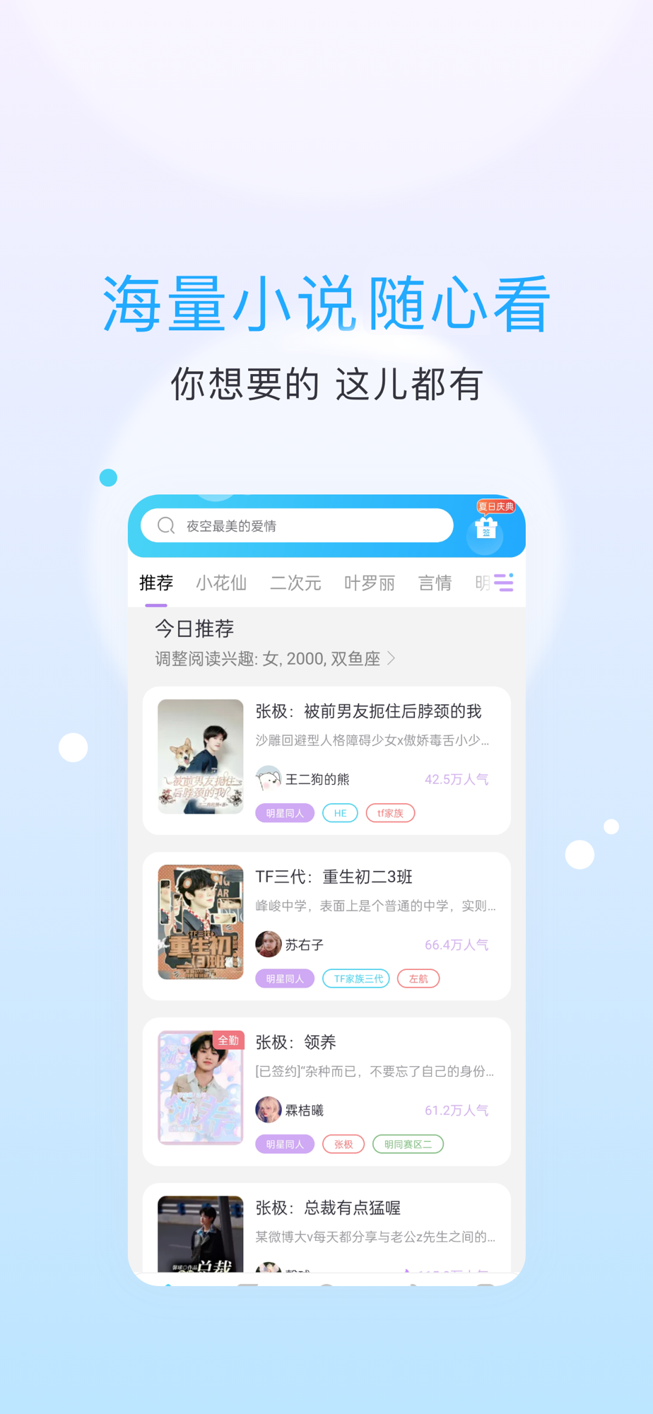 免费小说在线阅读、离线小说下载、全本小说缓存、秒速追更随时随地口袋阅读,让我们做个有情怀的小逗逼!